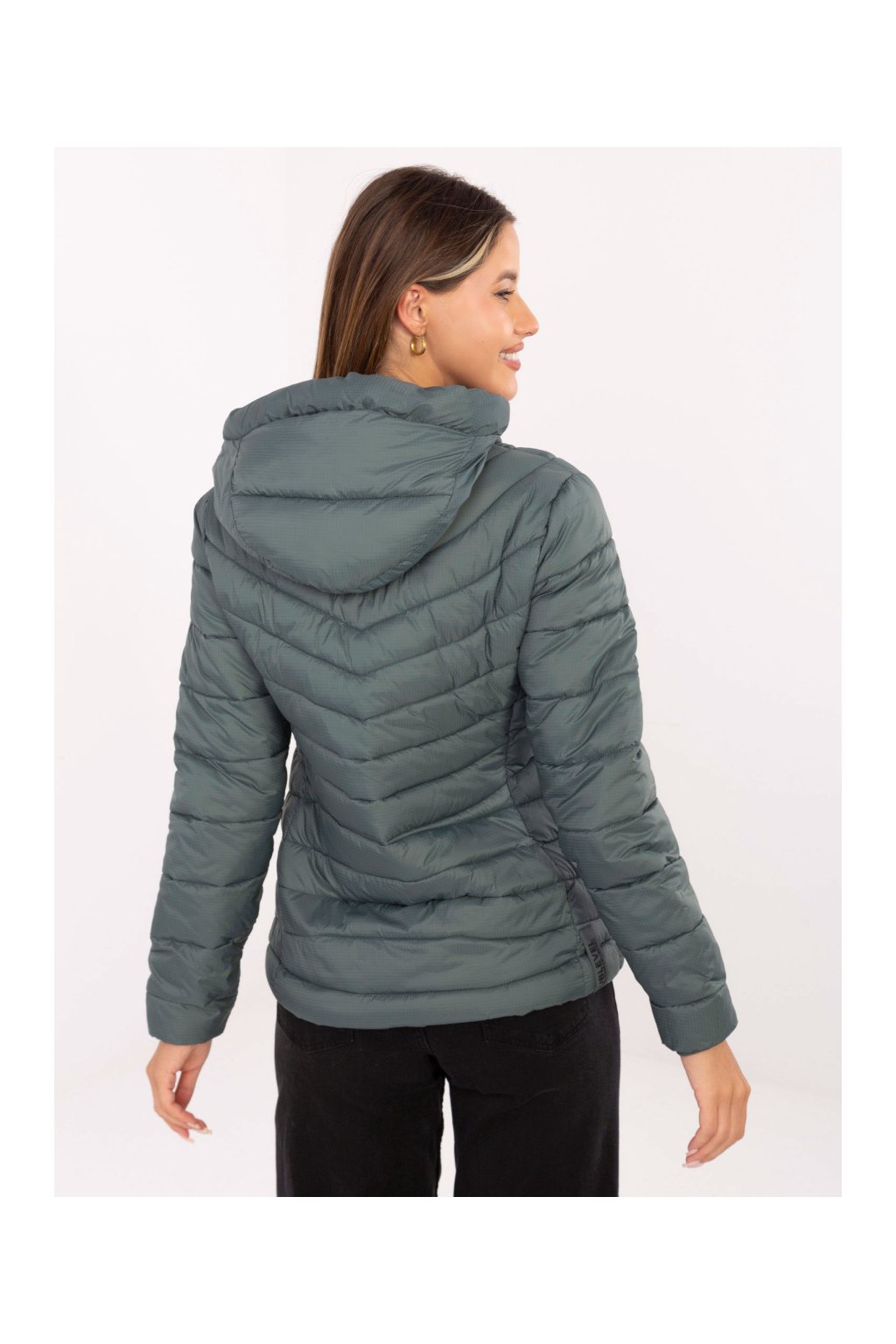 Prošívaná zimní bunda se zateplením. Mírně projmutý střih, vysoký límec pro ochranu krku, kapuce, postranní kapsy. Ozdobná léga zipu a náševky.