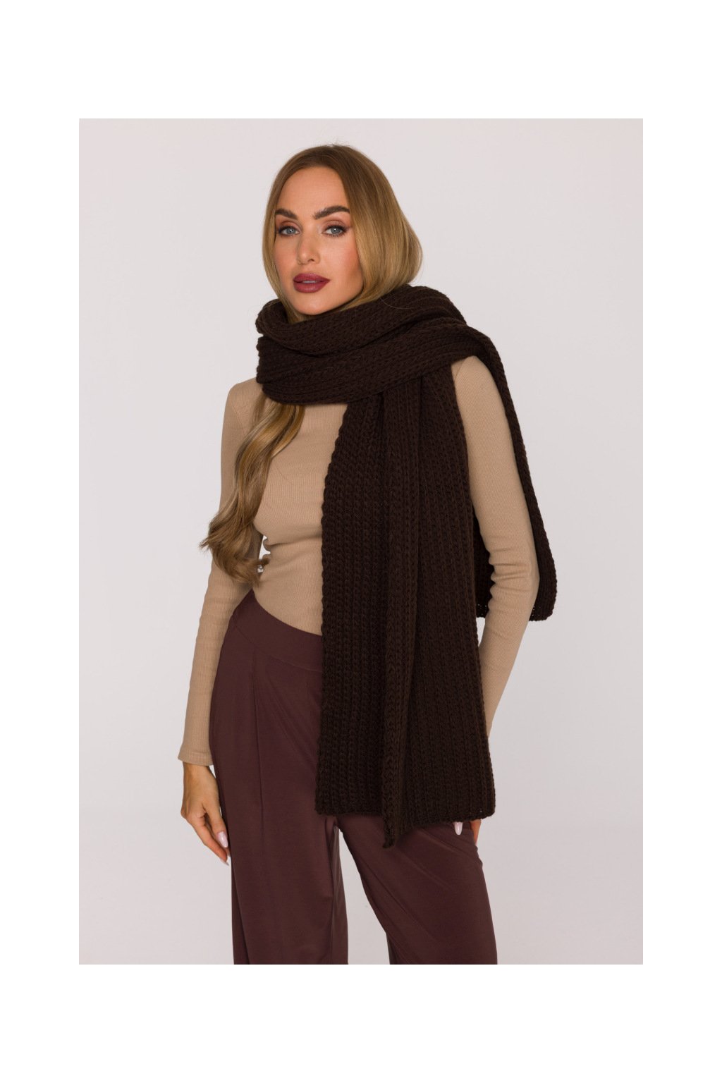 Teplá dlouhá šála pletená žebrovaný vzorem (brioche) z měkké příze.