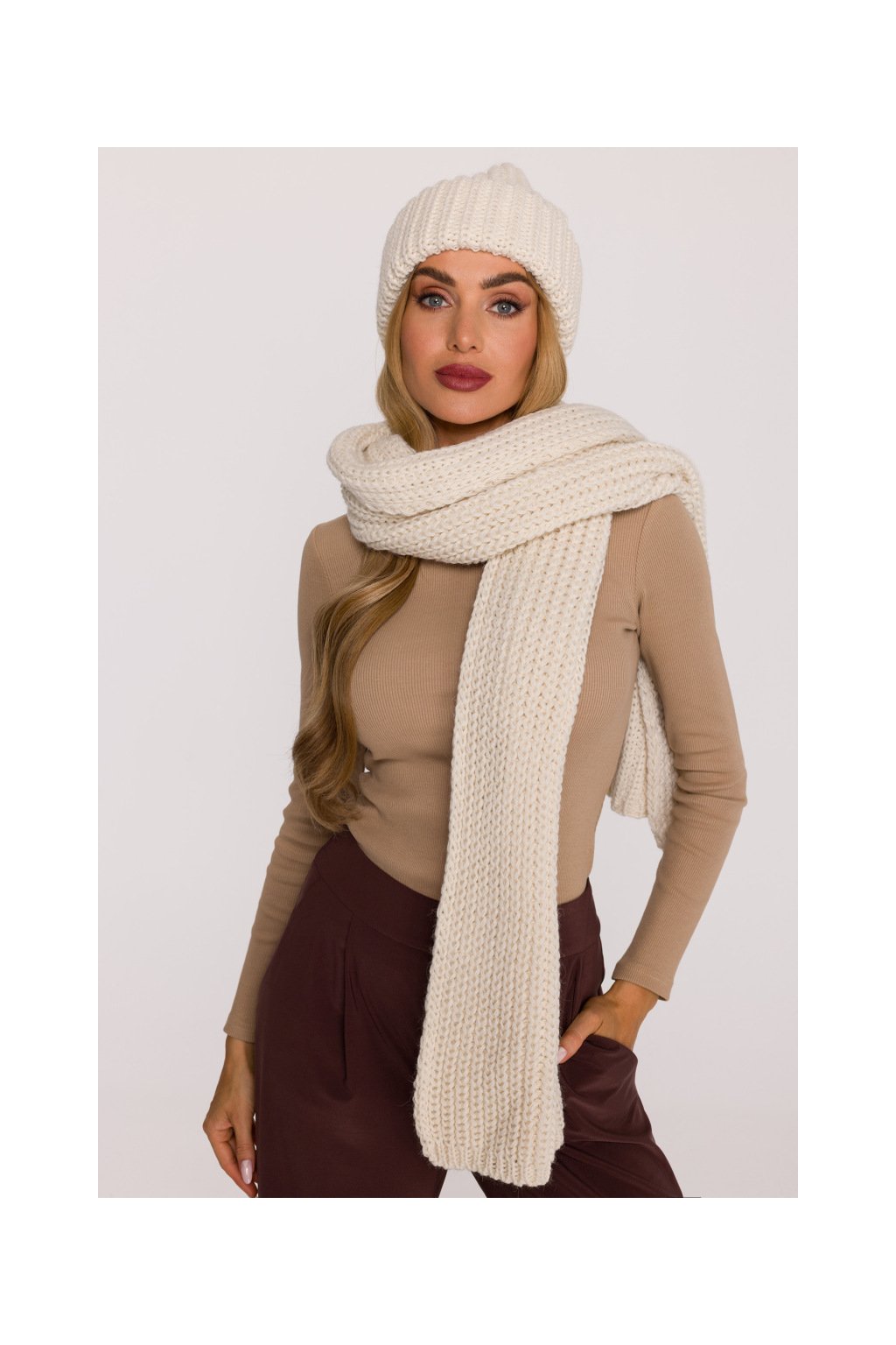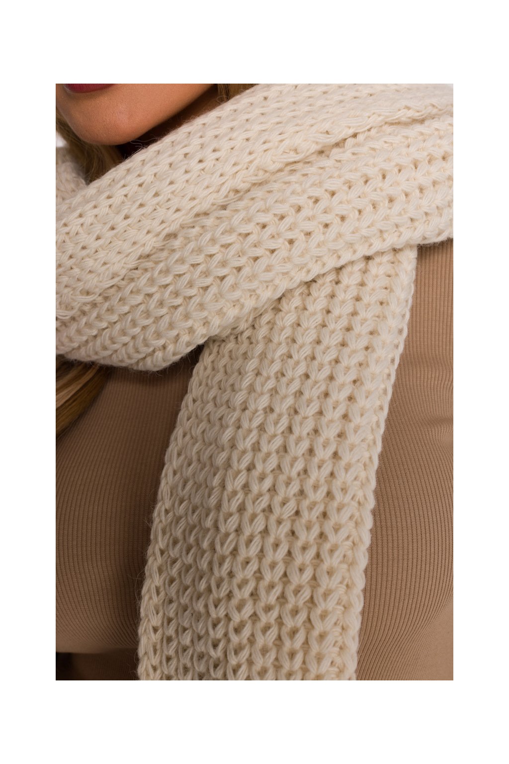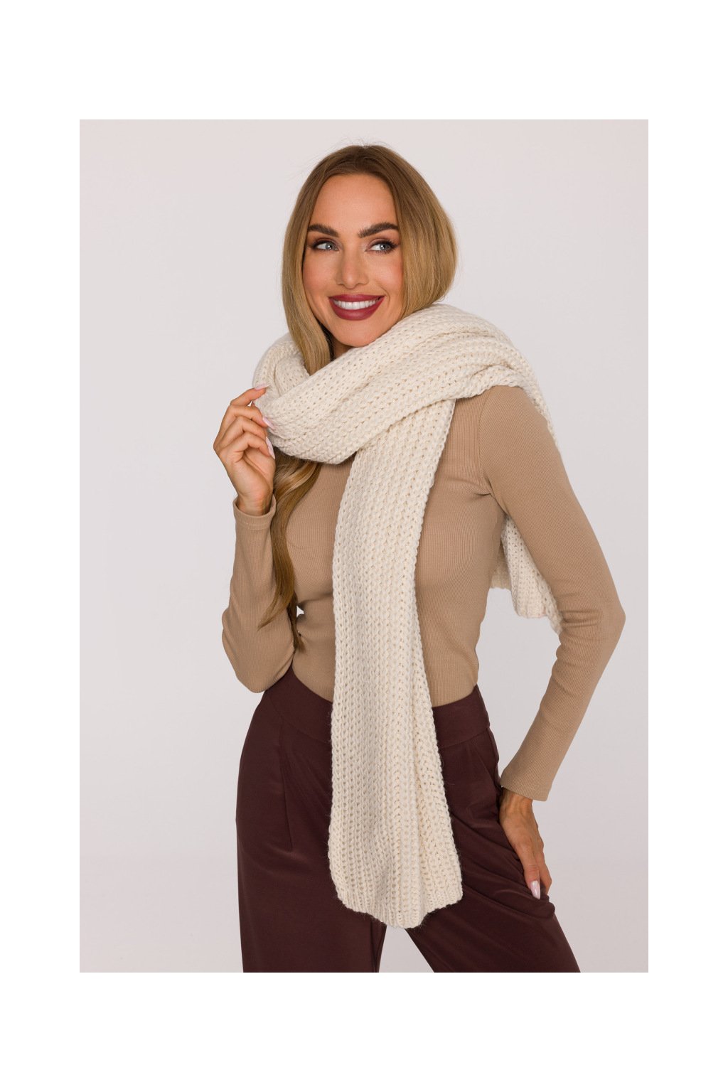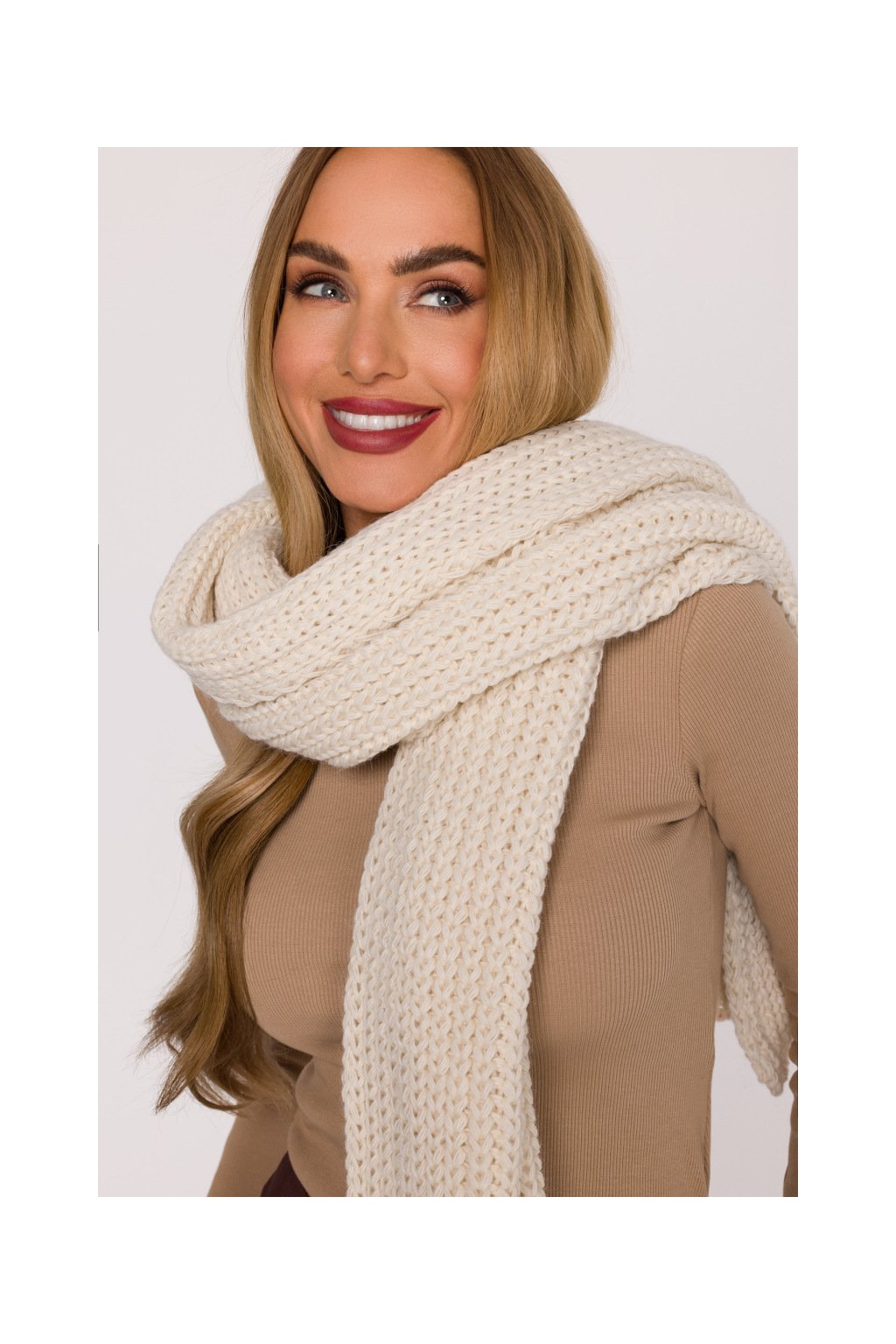 Pletená dlouhá šála MOE M896 smetanová
