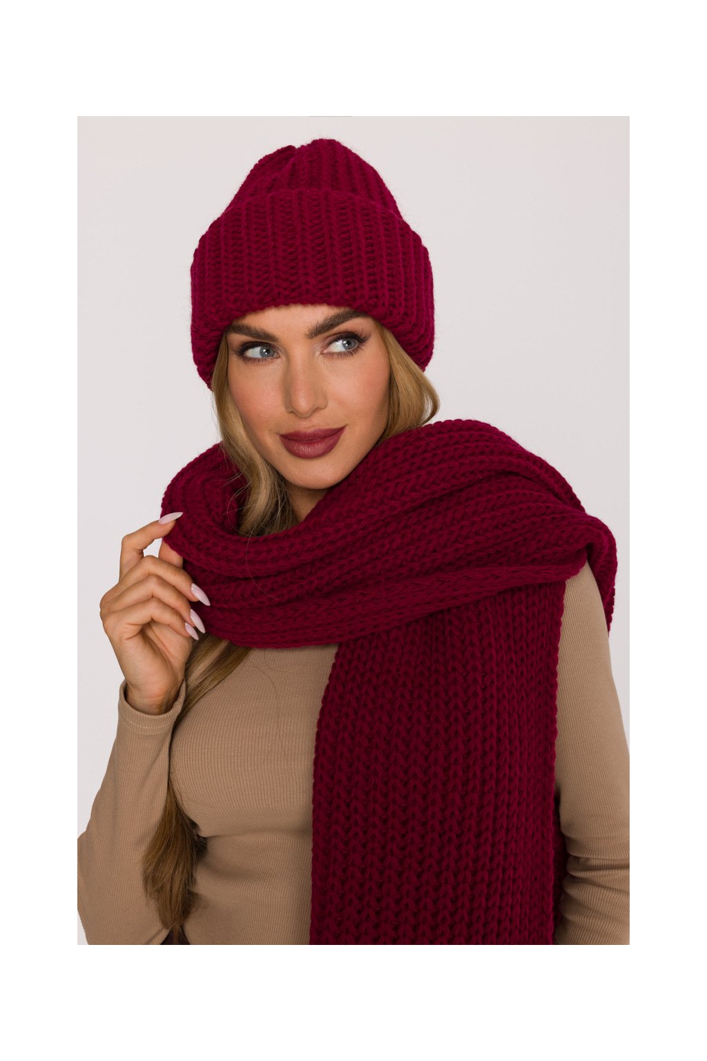 Pletená ohrnutá čepice beanie MOE M895 burgundy