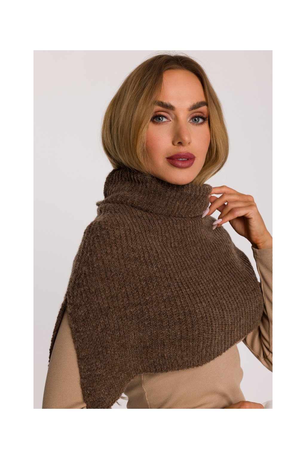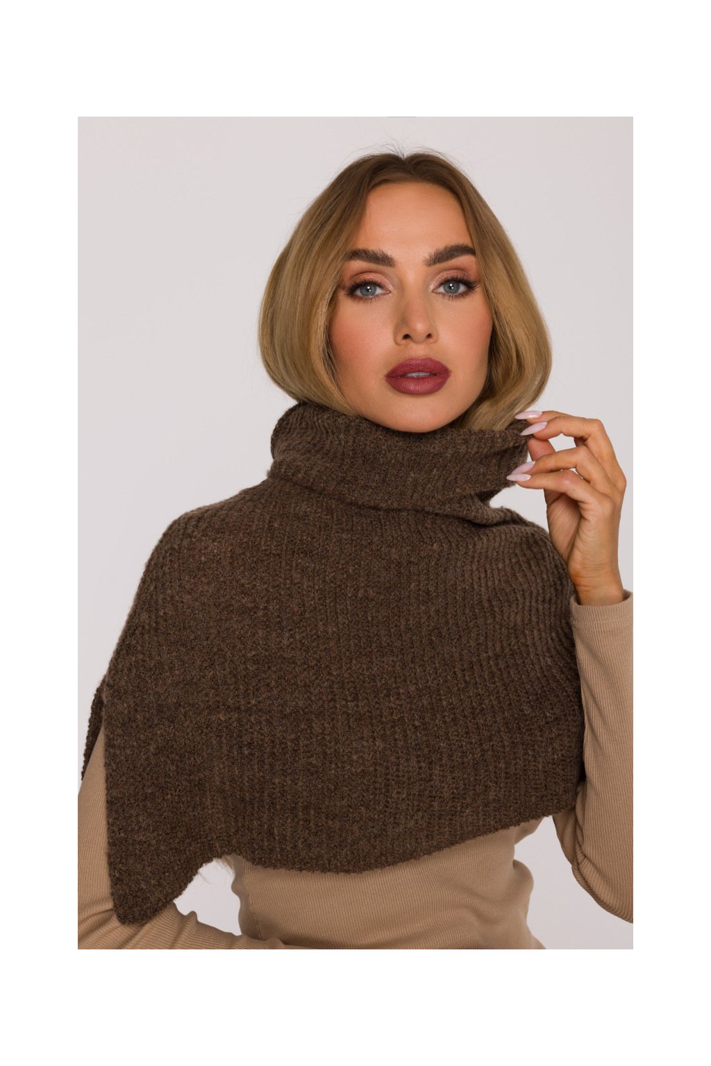 Pletený nákrčník s rolákem MOE M894 světle hnědý