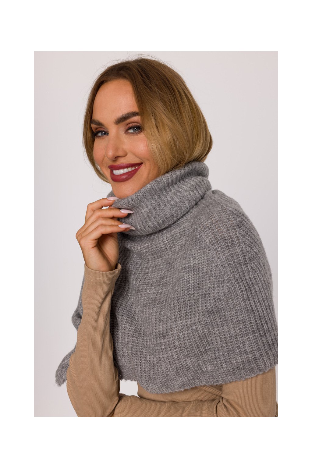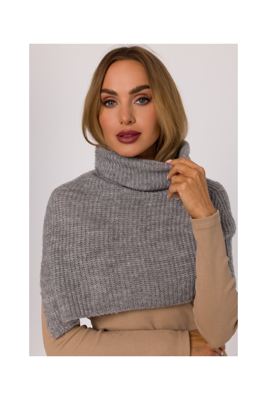 Pletený nákrčník s rolákem MOE M894 šedý