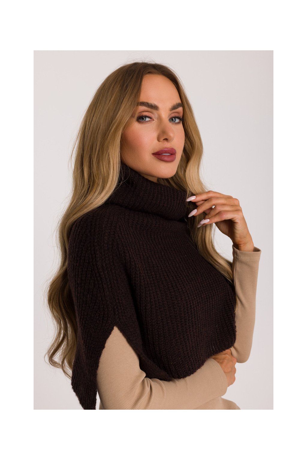Pletený nákrčník s rolákem MOE M894 tmavě hnědý
