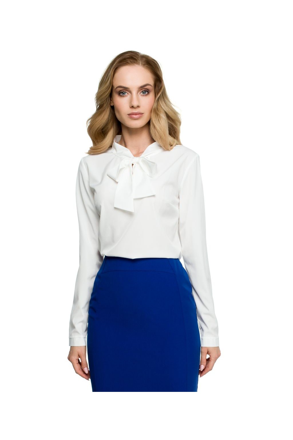Elegantní blůza s dlouhým rukávem, výstřih do V s výraznou vázačkou.