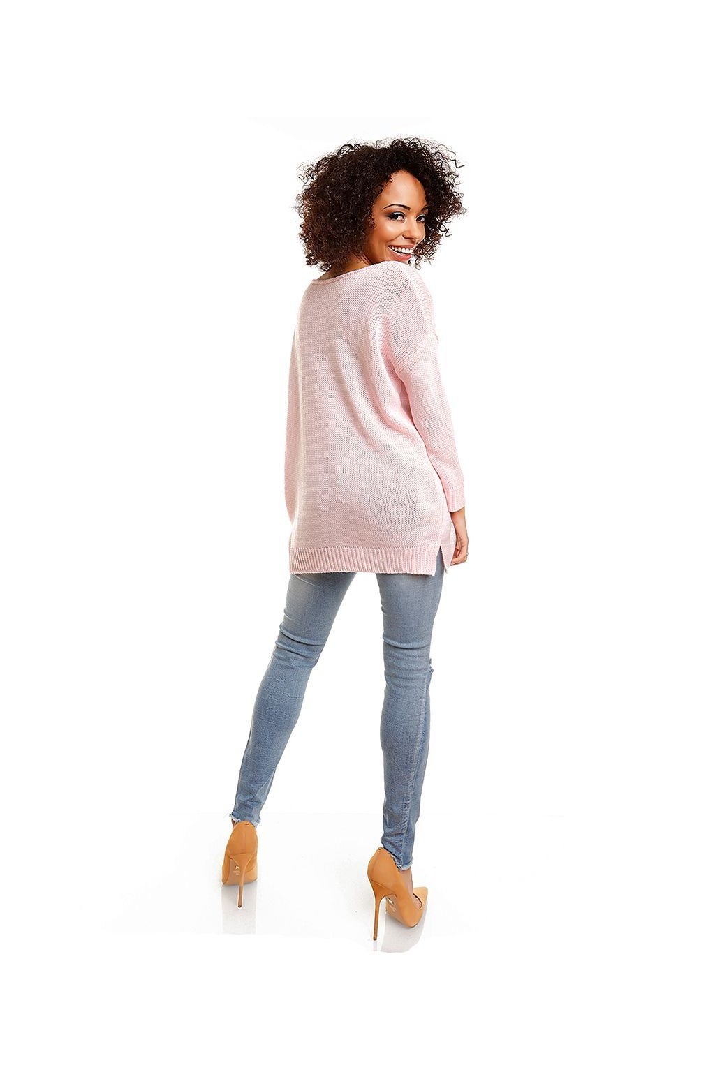Elegantní svetr z hladké pleteniny, volný oversized střih, u krku široký výstřih.