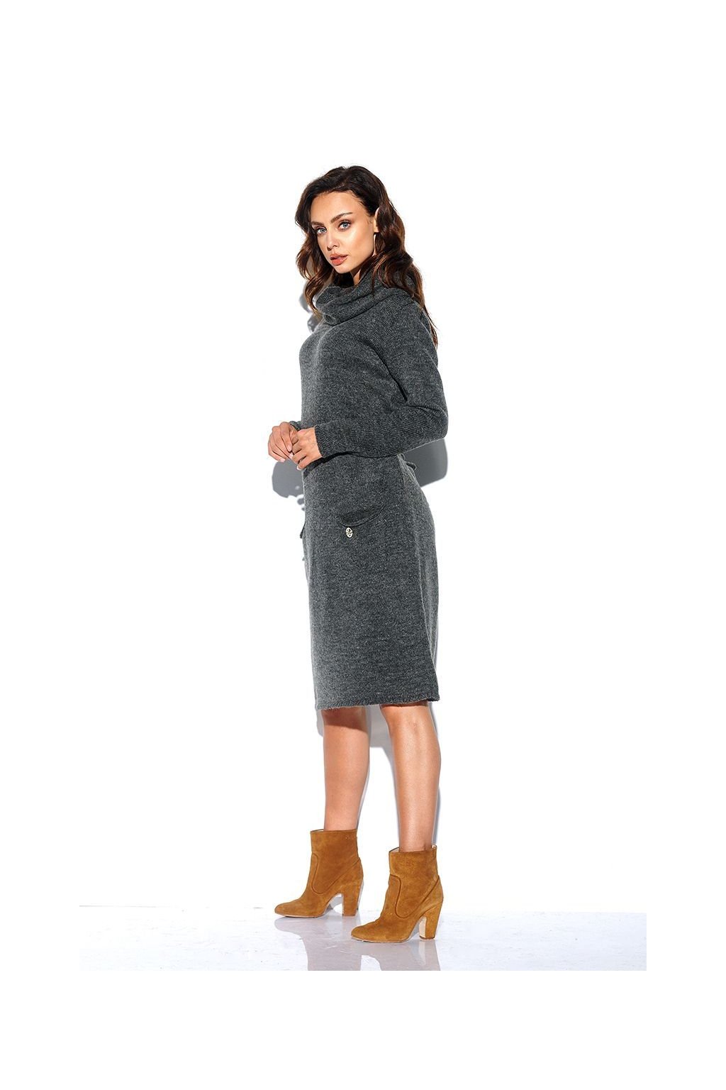 Pletené šaty s rolákem Lemoniade LS257 tmavě šedé