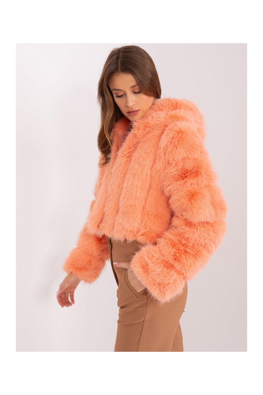 Krátký kožešinový kabát Wool Fashion Italia oranžový