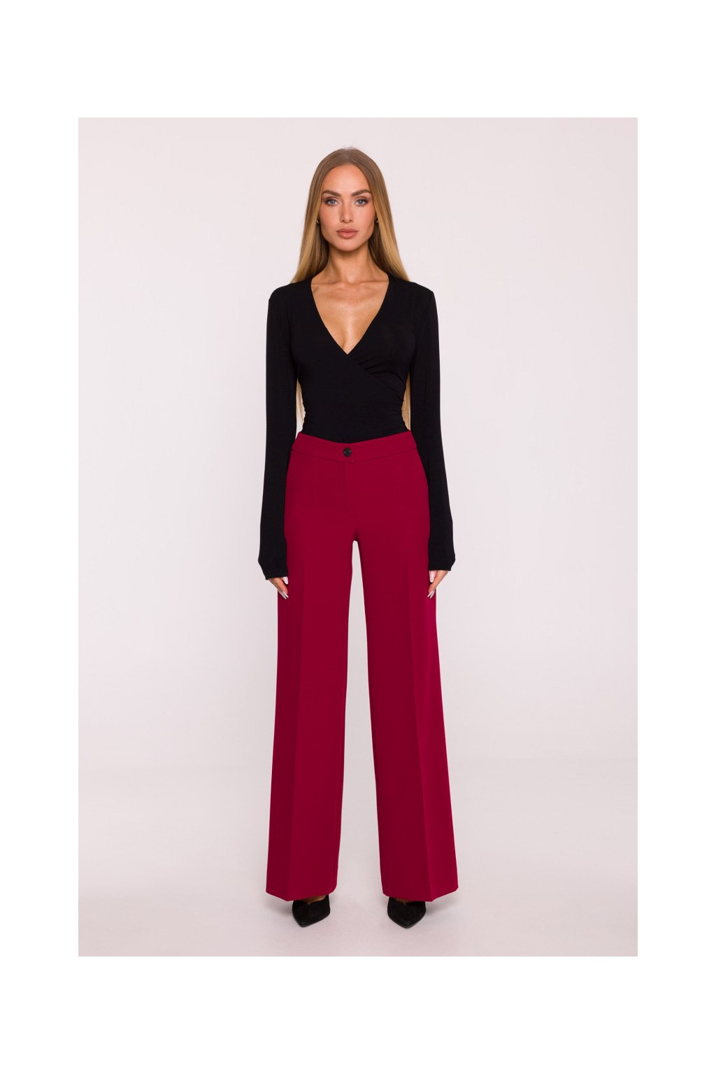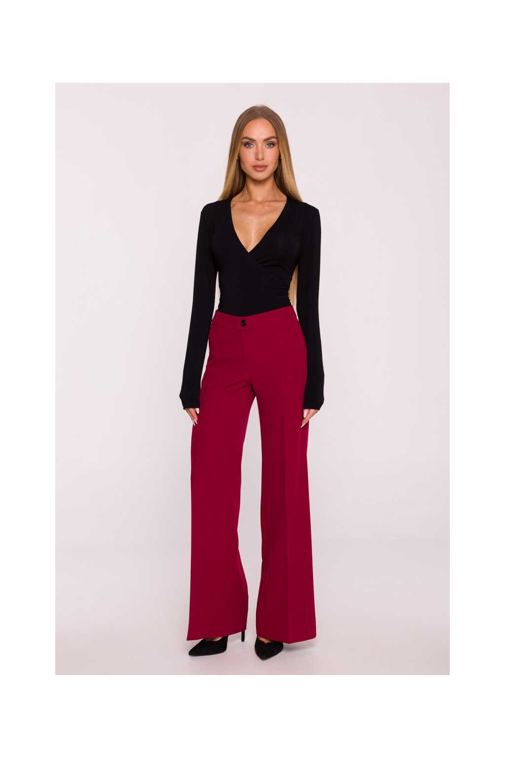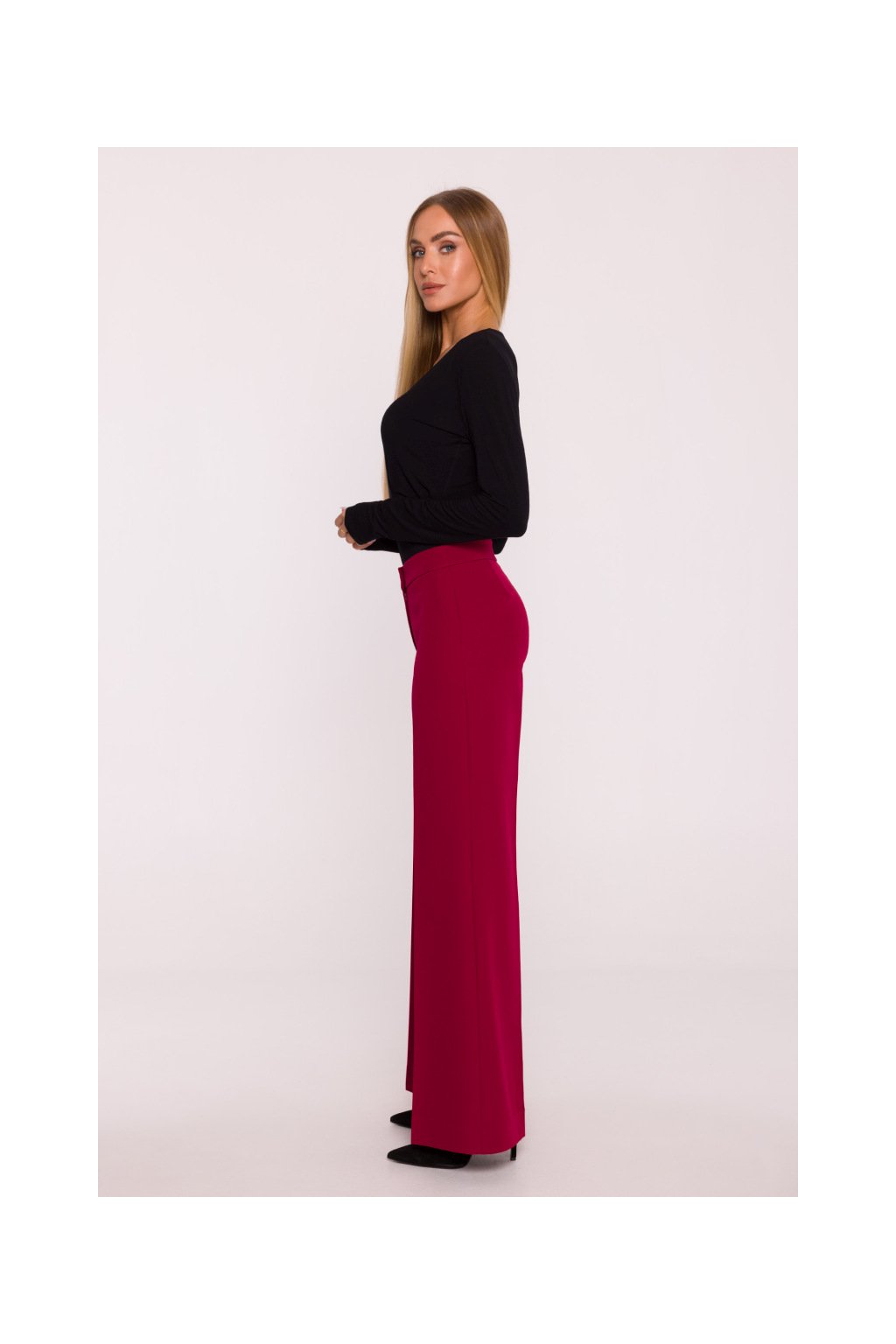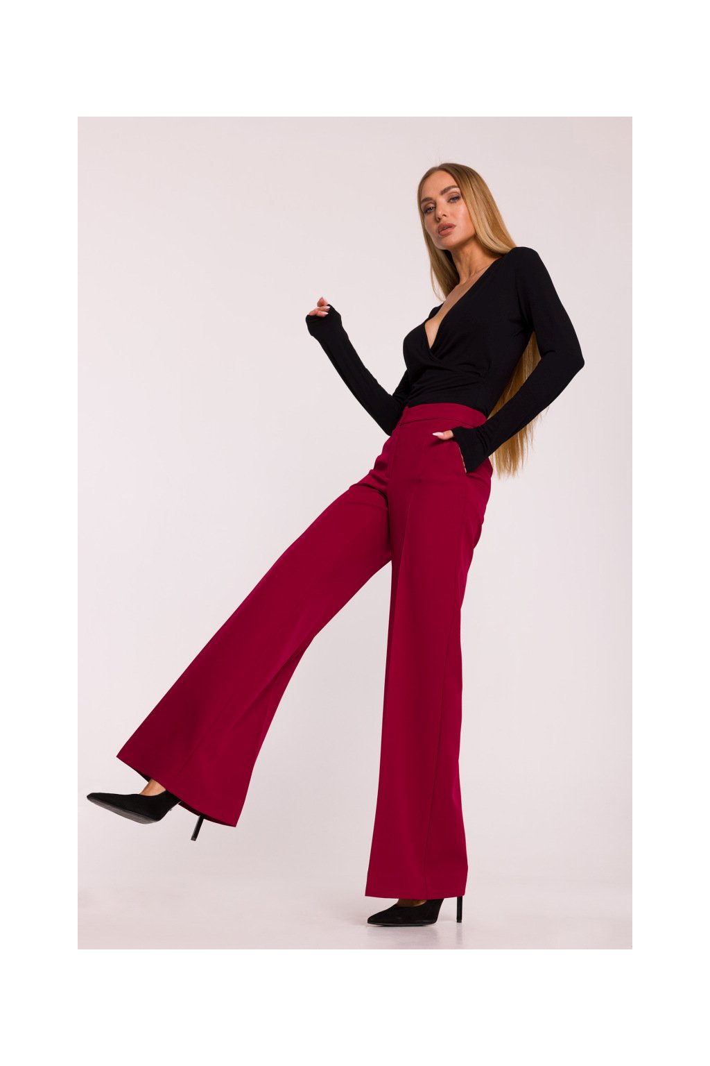 Dámské široké společenské kalhoty MOE M875 bordó