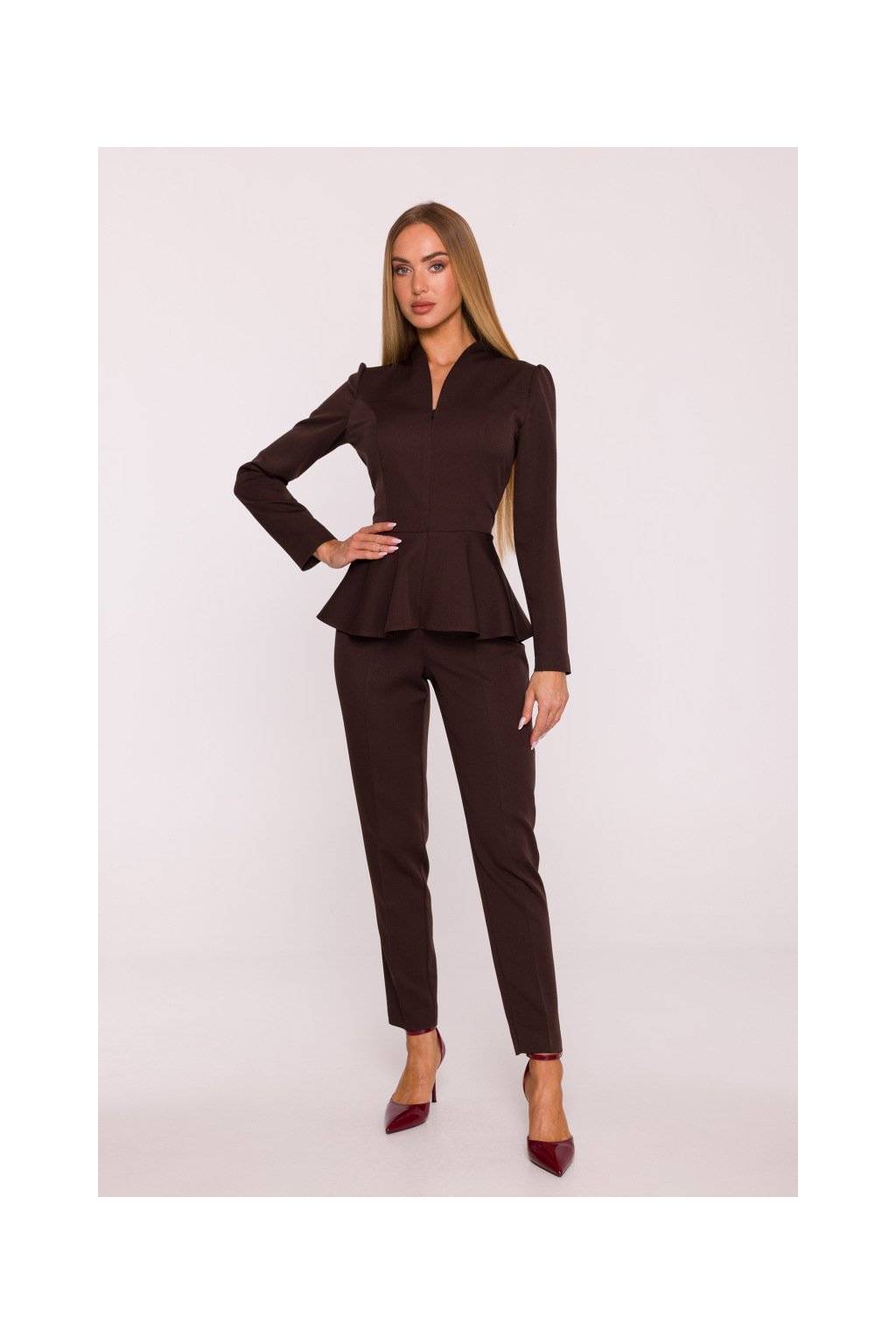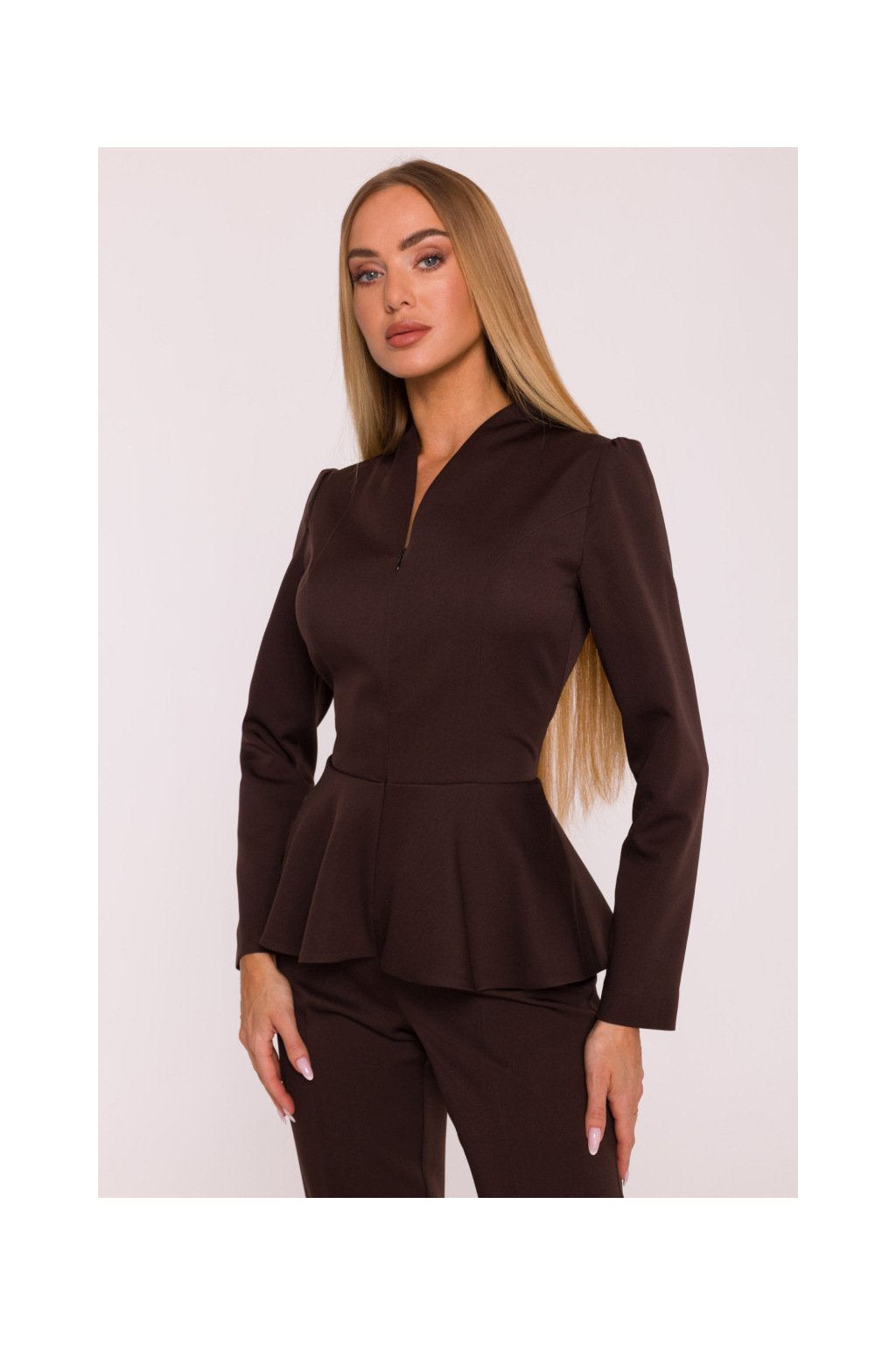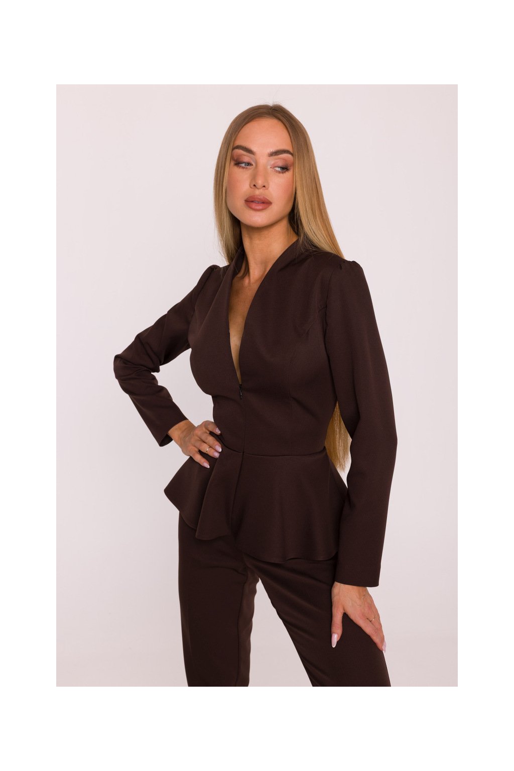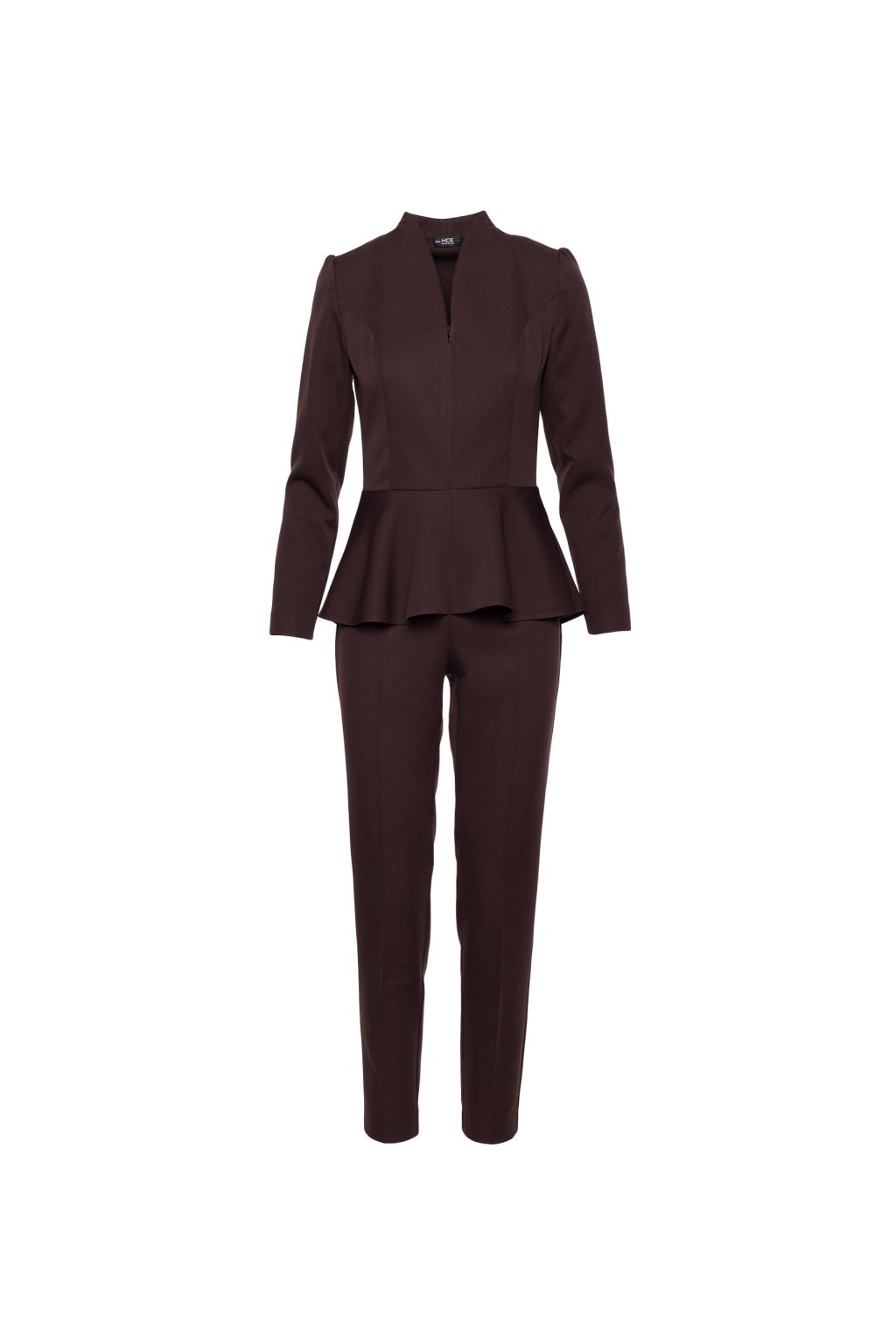 Elegantní peplum overal MOE M878 hnědý
