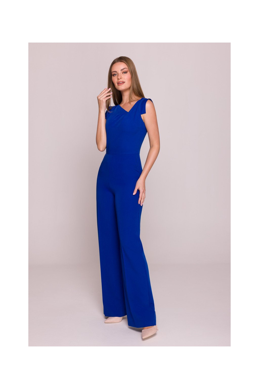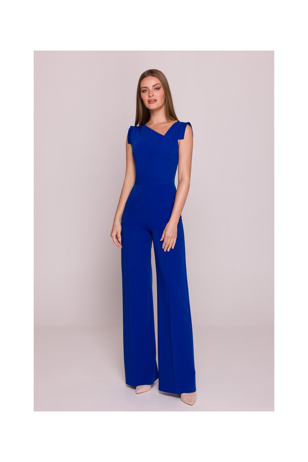 Společenský overal s asymetrickým výstřihem Stylove S407 královsky modrý
