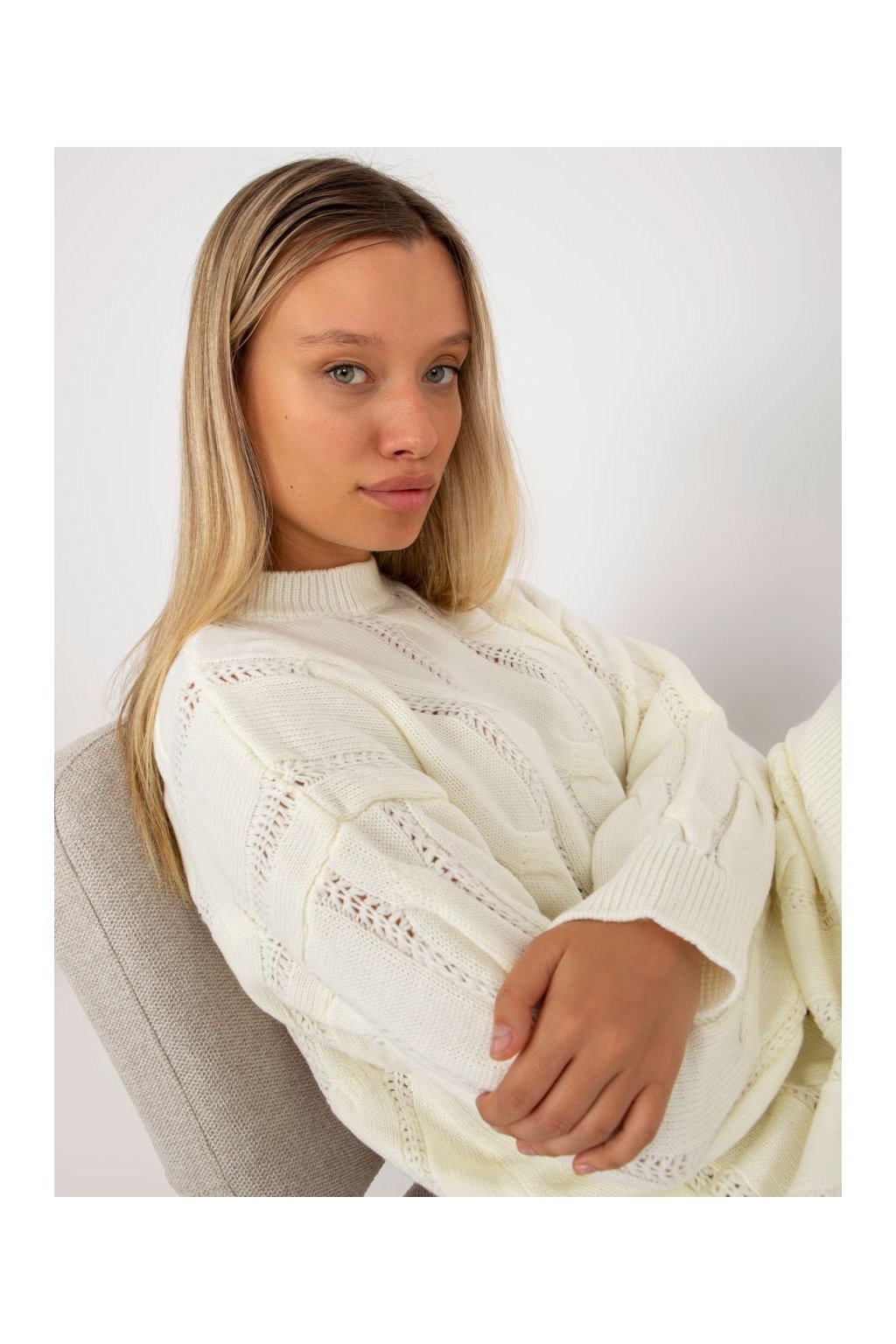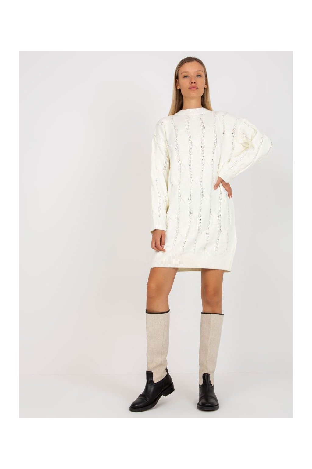 Široké pohodlné pletené šaty s výrazným copánkovým vzorem, dlouhé rukávy, u krku malý kulatý výstřih.