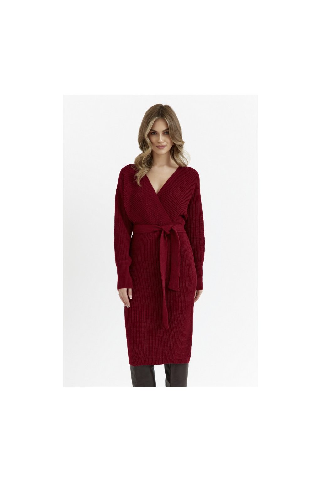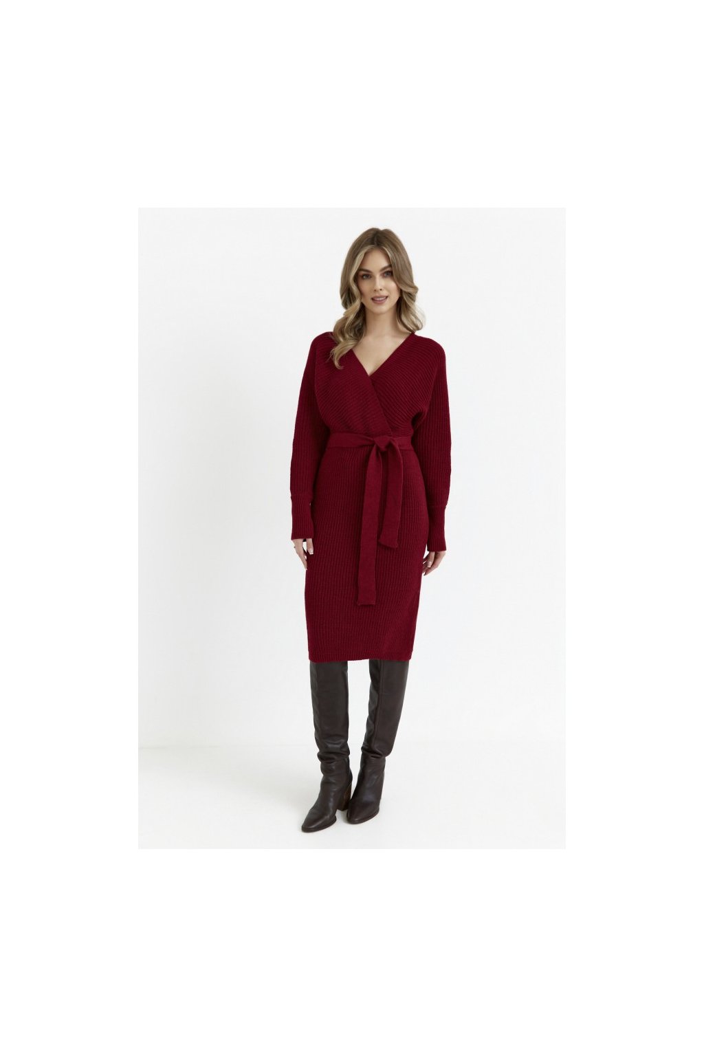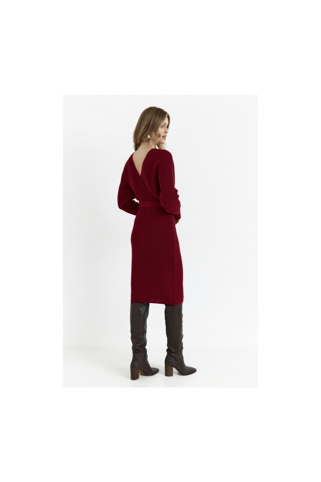 Pletené šaty s netopýřími rukávy MOE M810 bordó