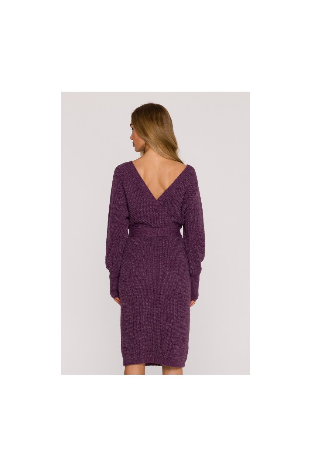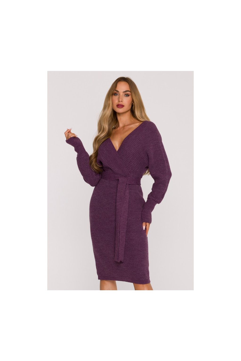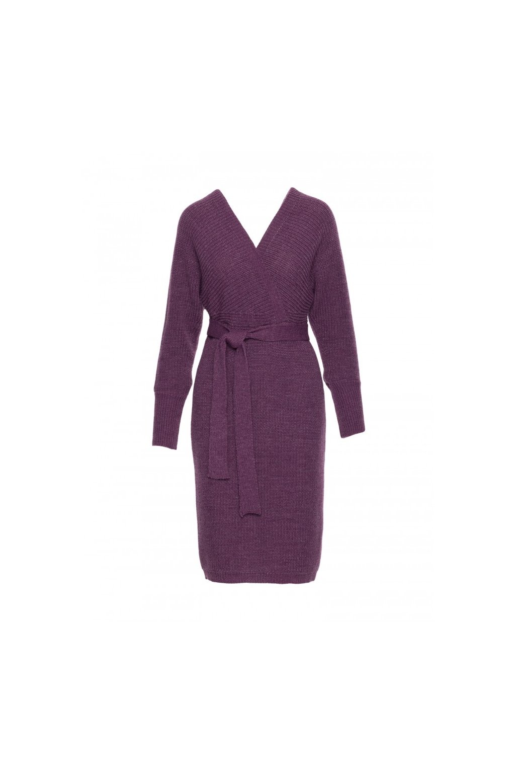 Pletené šaty s netopýřími rukávy MOE M810 vřesové