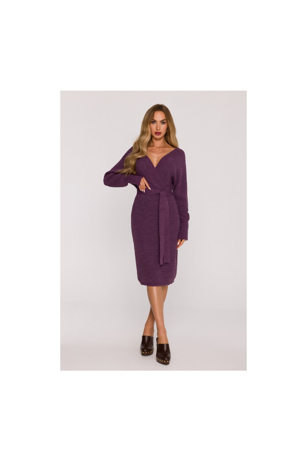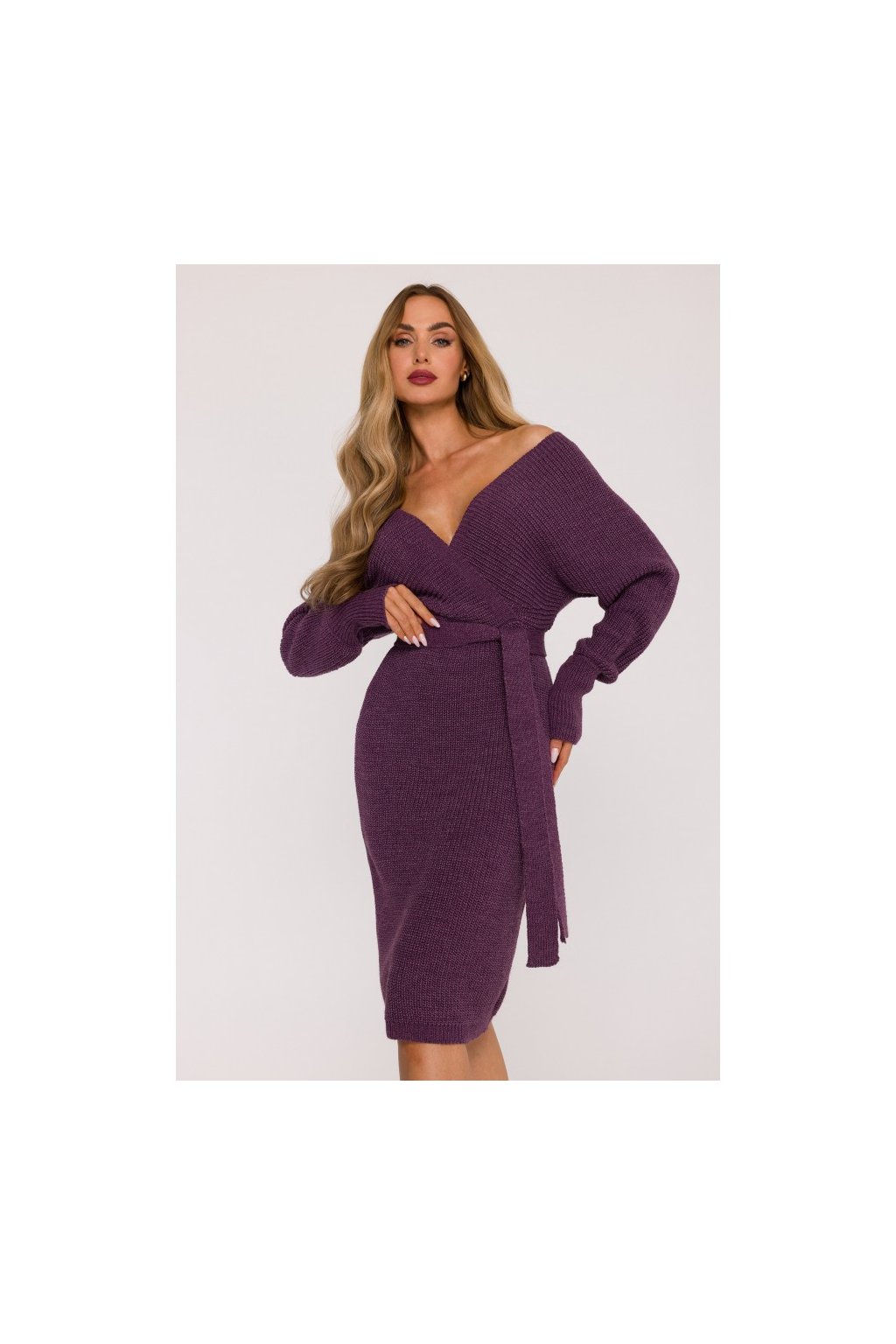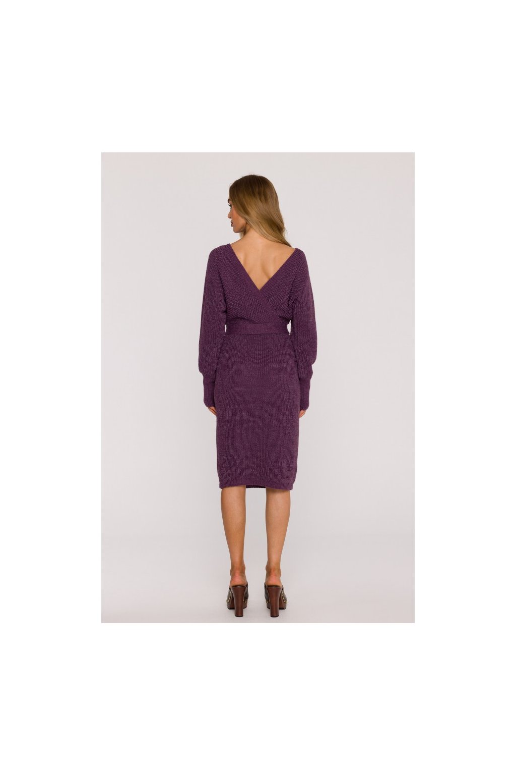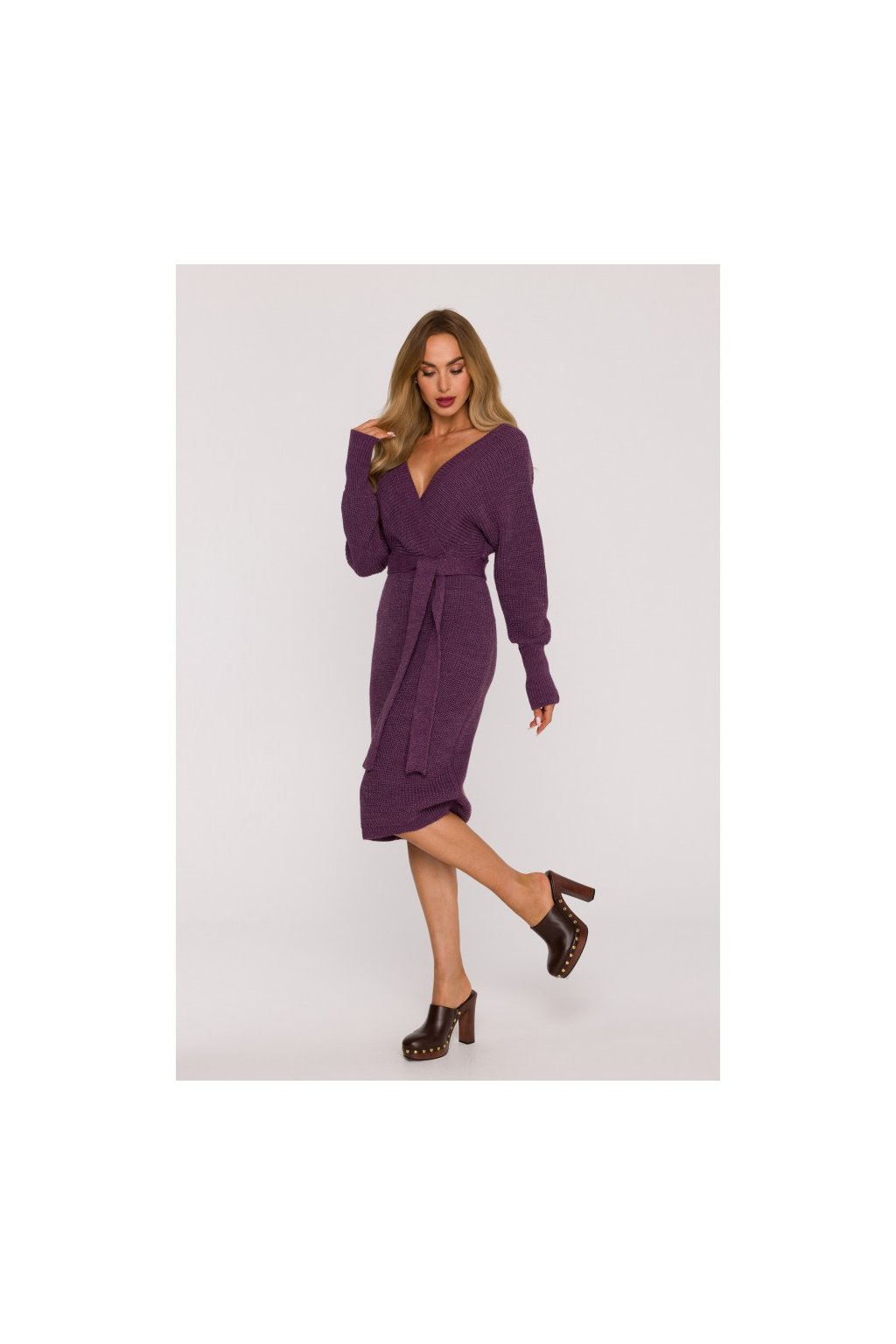 Pletené šaty s netopýřími rukávy MOE M810 vřesové