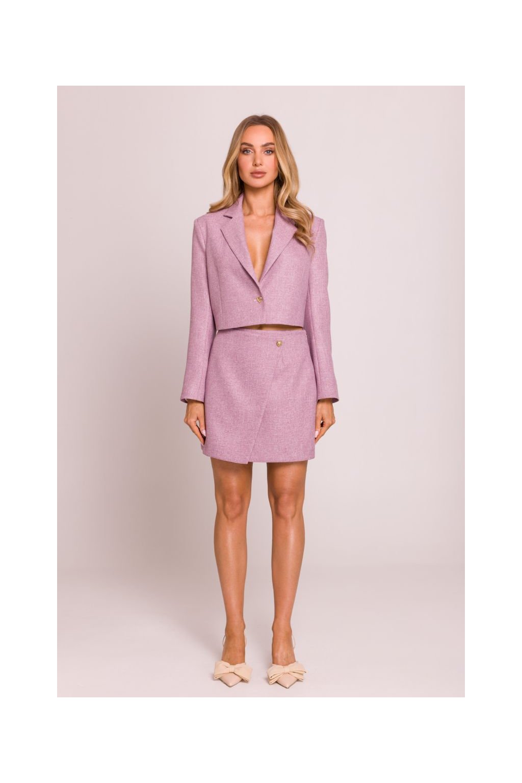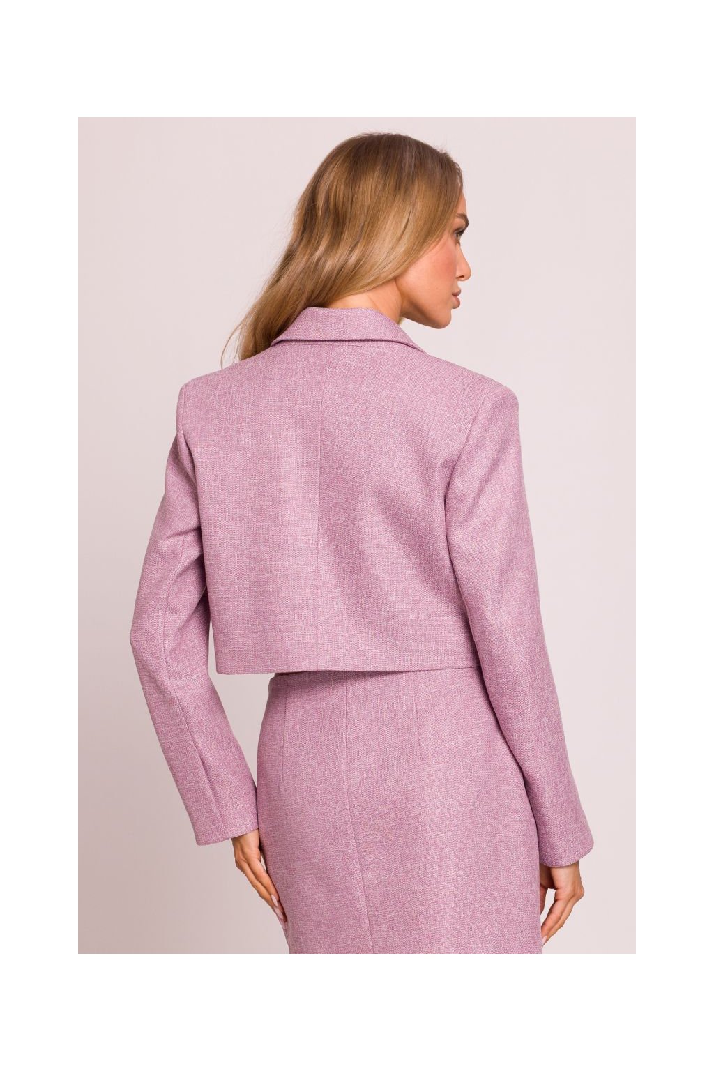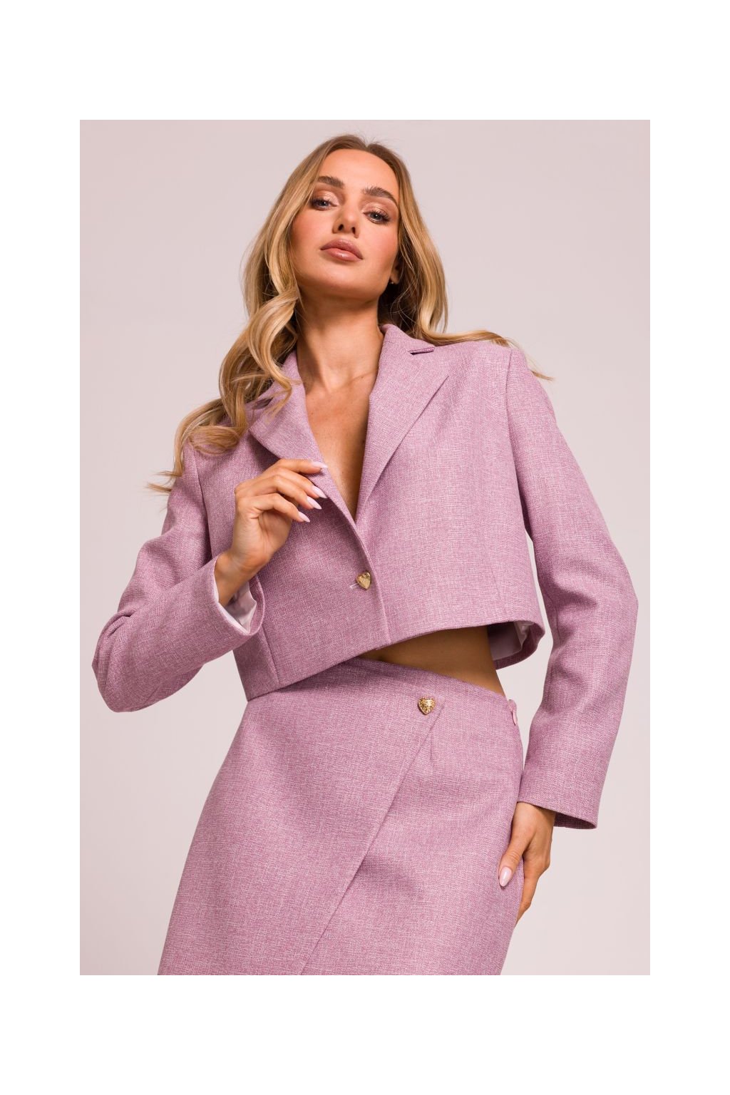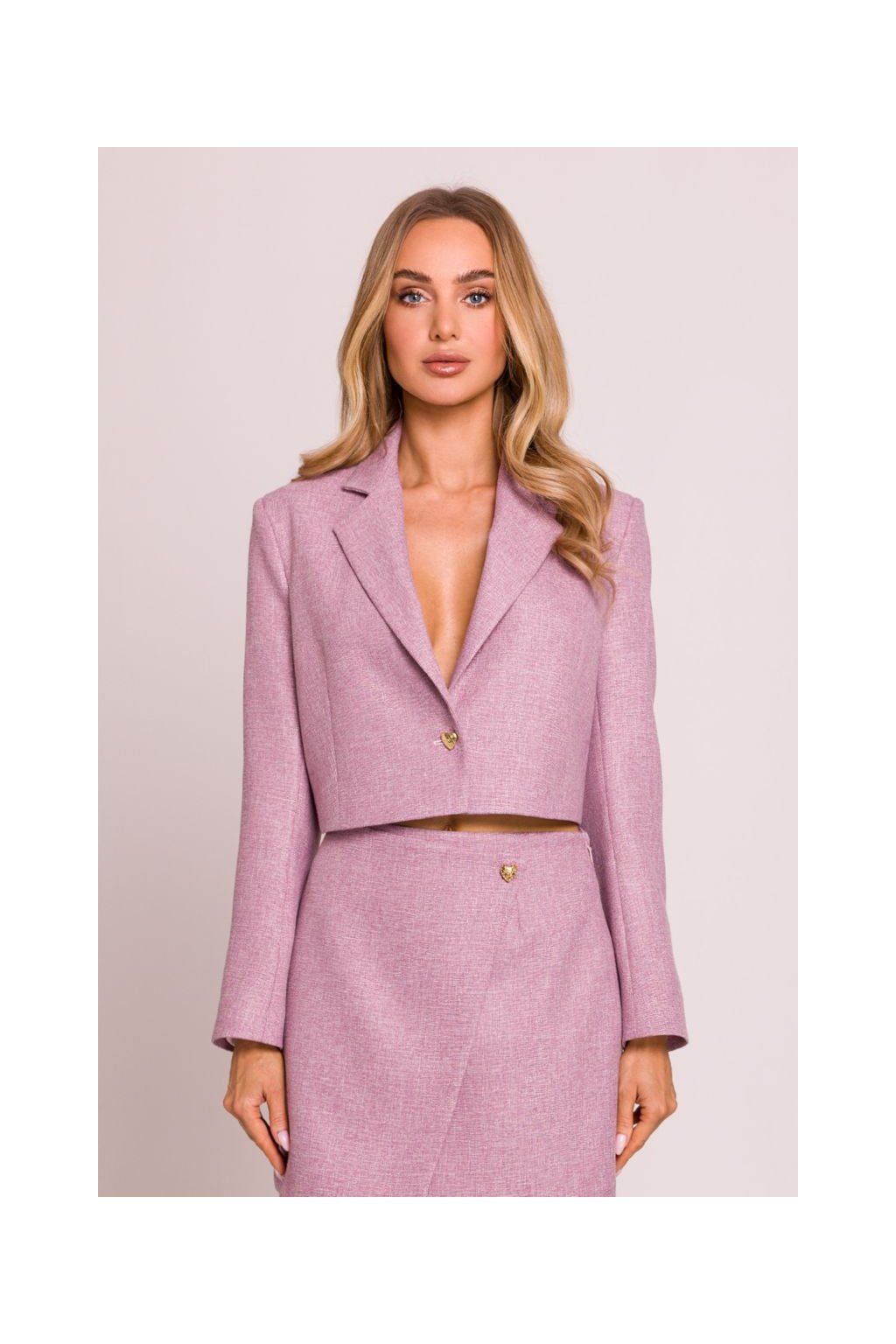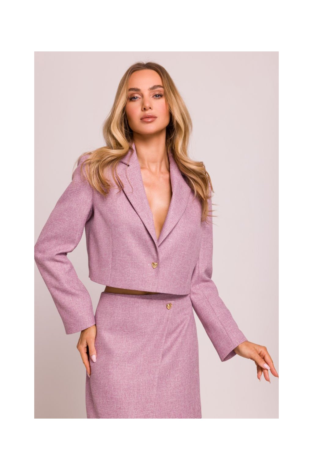 Krátký střih saka lichotí postavě a umožňuje nekonečné kombinace s vysokými kalhotami, sukněmi nebo i šaty. Sako tak vytváří nádhernou siluetu, která zvýrazní vaši jedinečnost. Kombinace klasických linií s moderní zkrácenou délkou představuje svěží pohled na tradiční šatníkový kousek. Nejvýraznějším prvkem tohoto saka je bezpochyby zapínání na jeden knoflík ve tvaru srdce. Tento detail je jako malý šperk, jenž dokáže celému outfitu dodat nádech originality a radosti. Srdcový knoflík není pouze praktický, ale zároveň vyjadřuje hravost, něžnost a pozornost k detailu. Je to symbol radosti ze života, který můžete nosit každý den.