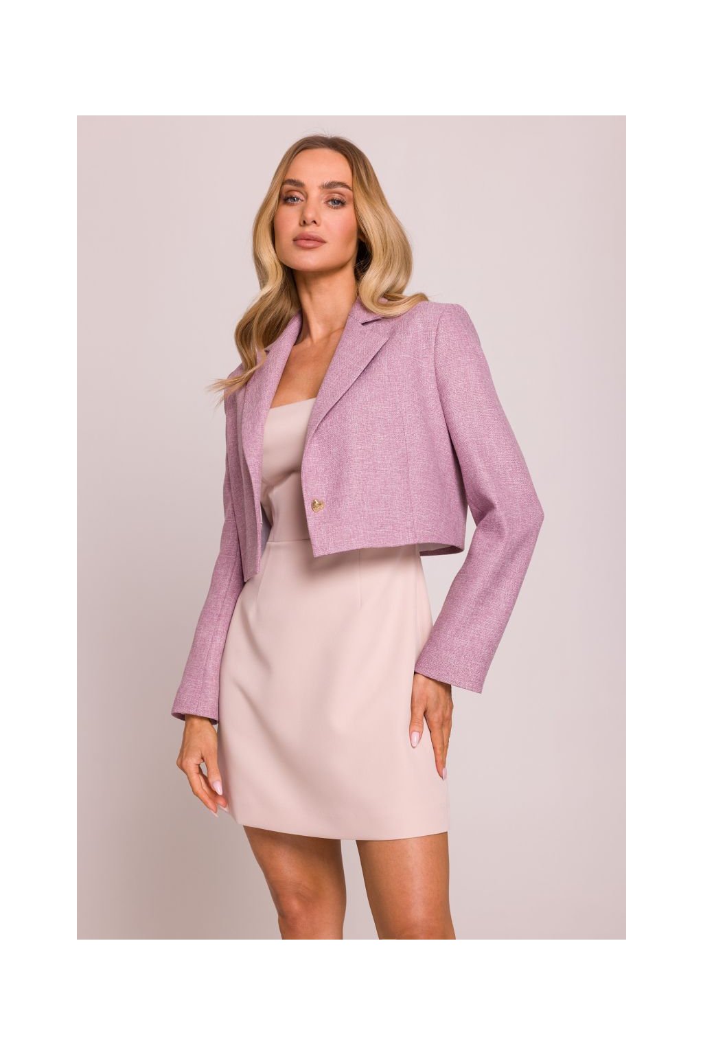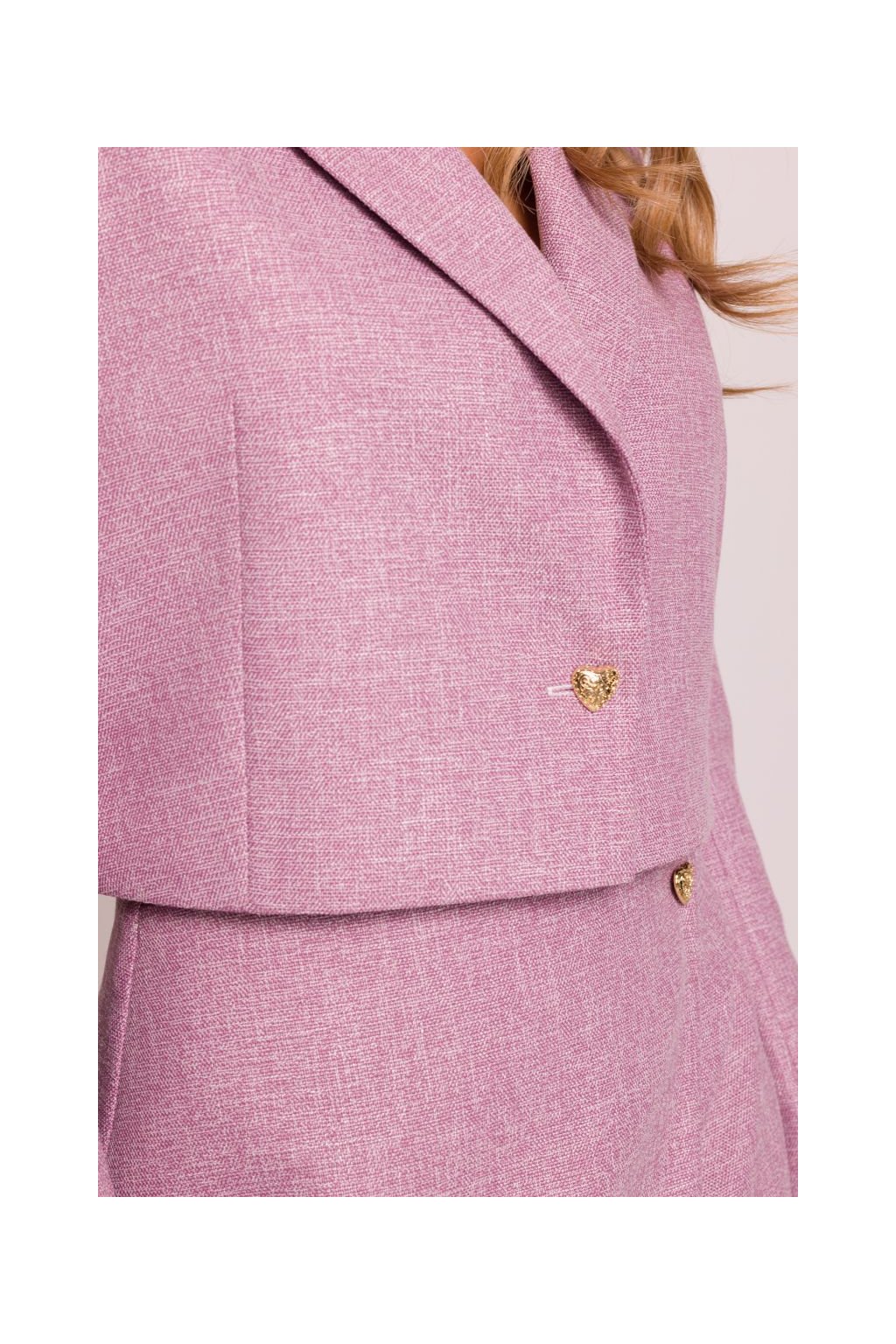 Moderní a hravý design, který pozvedne každý váš outfit. Sako krátkého střihu s klasickými klopami a zapínánín na jeden knoflík ve tvaru srdce. Dlouhé rukávy. Plně podšité. Výrazná tkaná textura.