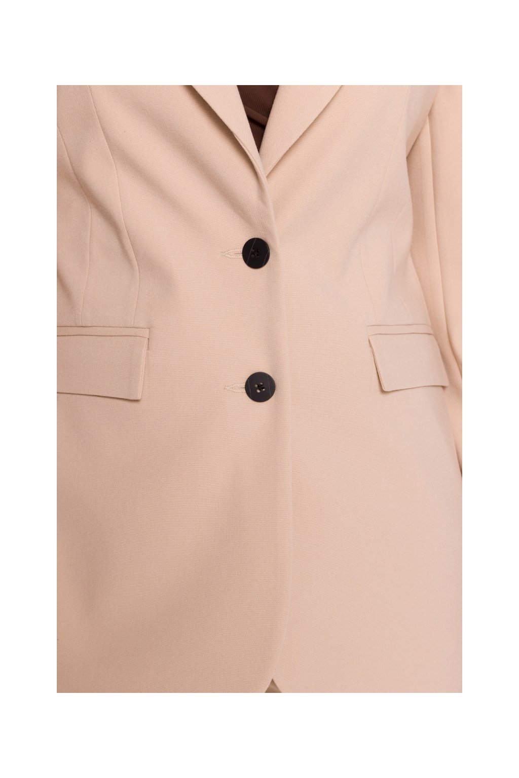 Toto elegantní sako s jednořadým zapínáním je nadčasovou kancelářskou klasikou, která by neměla chybět v žádném šatníku. Díky velmi projmutému střihu krásně zvýrazní ženskou siluetu a působí mimořádně stylově, ať už jej obléknete do práce, nebo na víkendový brunch s přáteli.