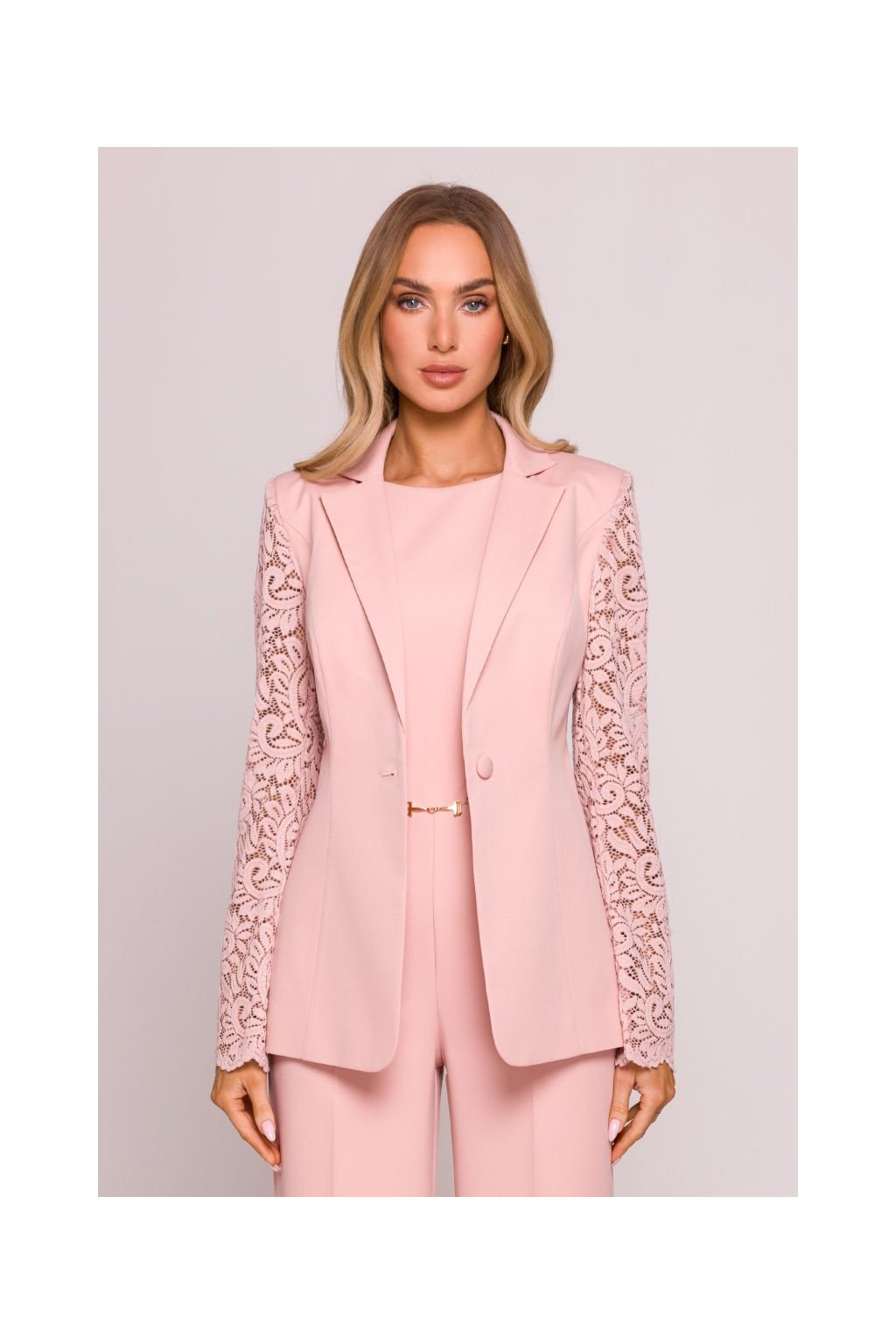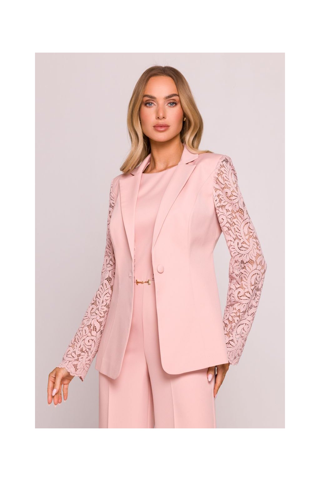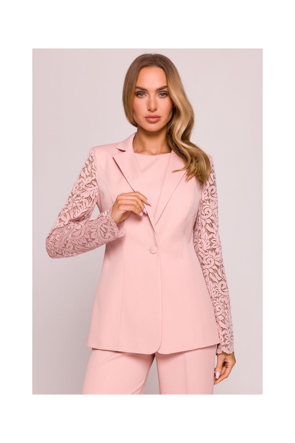 Slavnostní sako s krajkovými rukávy MOE M865 růžové