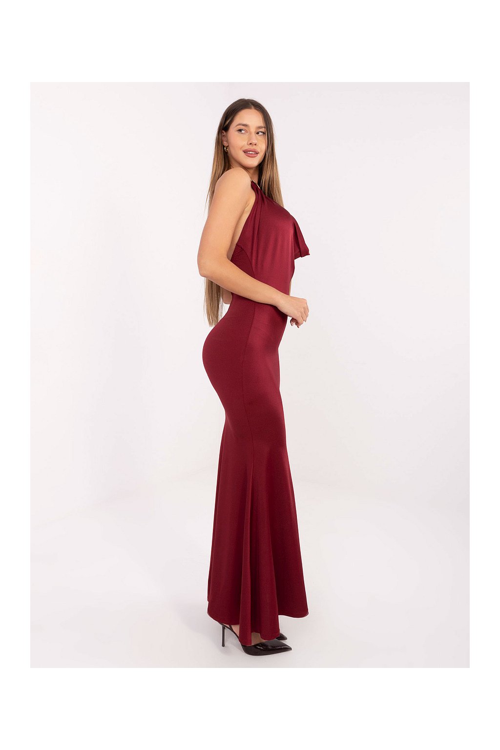 Dlouhé šaty s efektním výstřihem Italy Fashion bordó