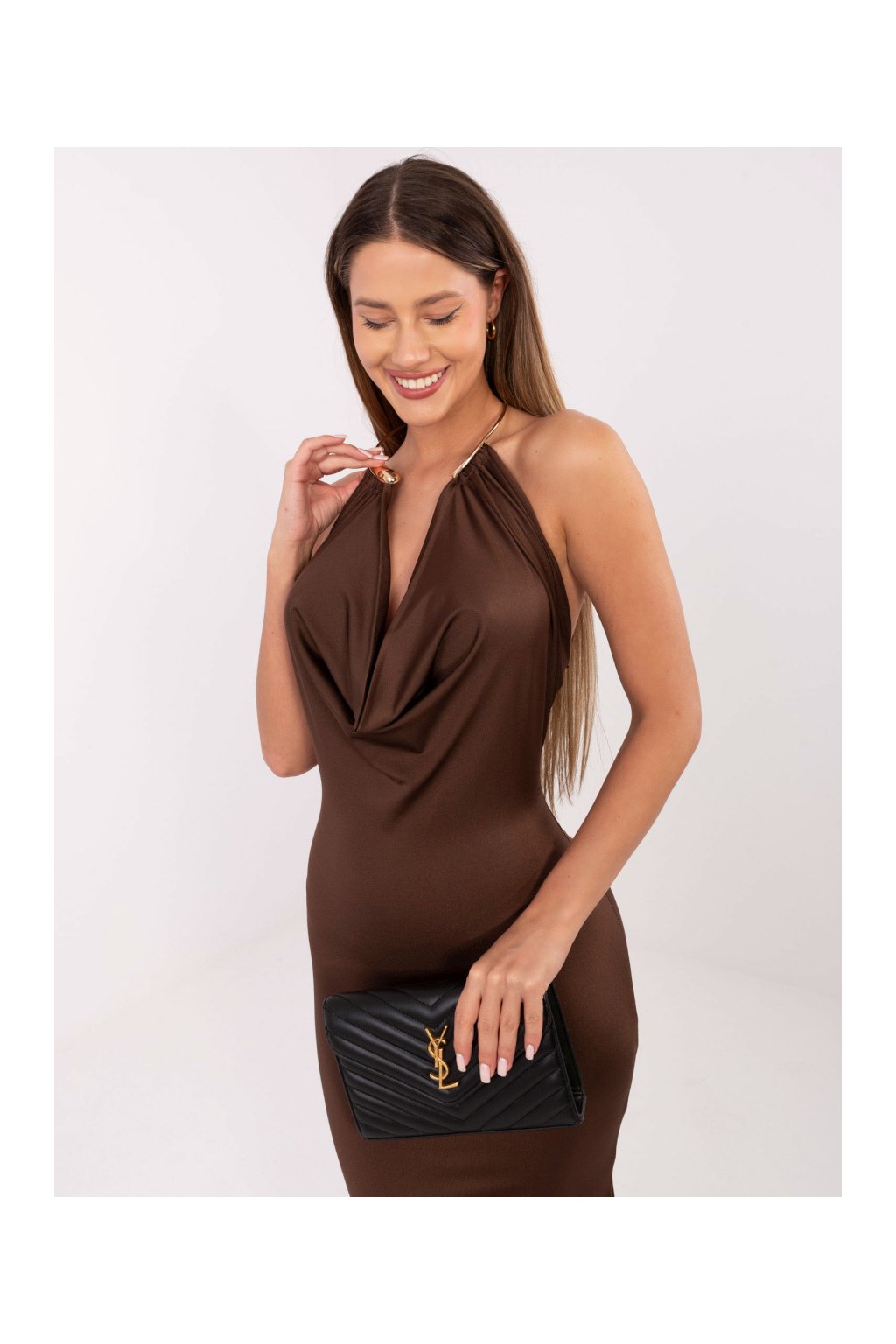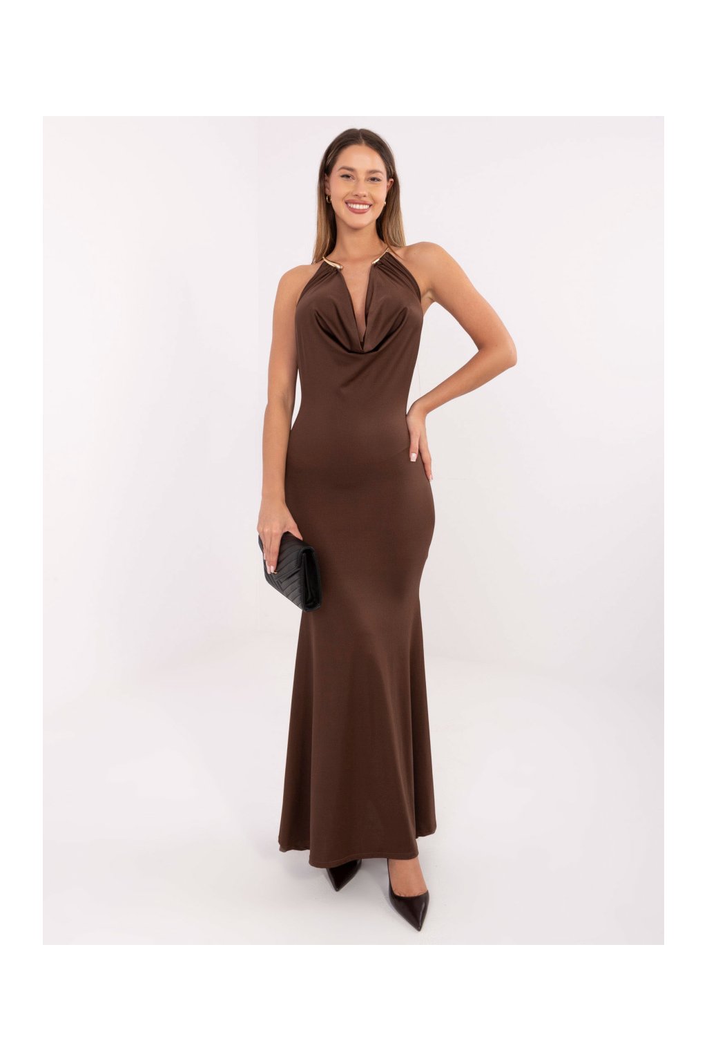 Dlouhé šaty s efektním výstřihem Italy Fashion hnědé
