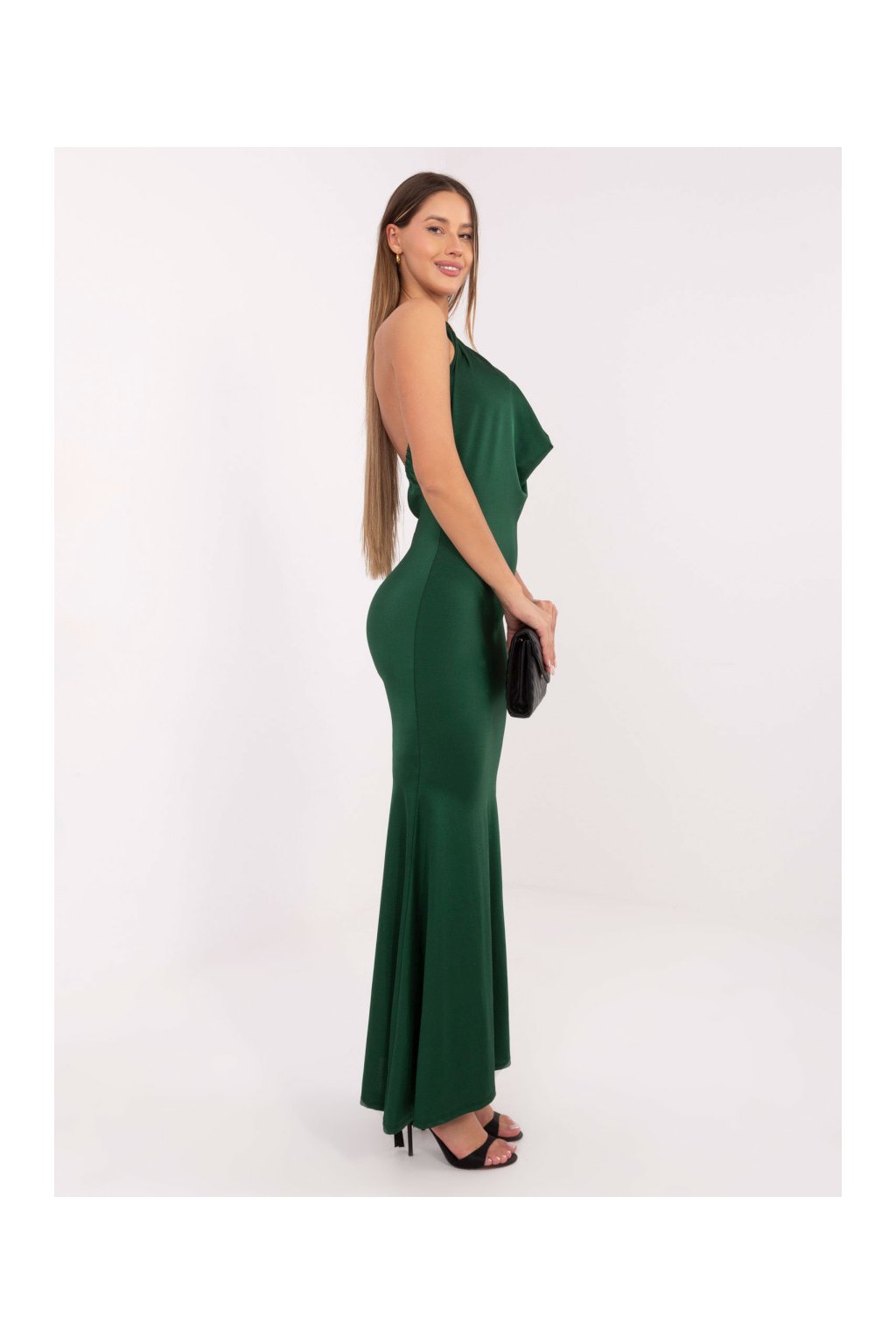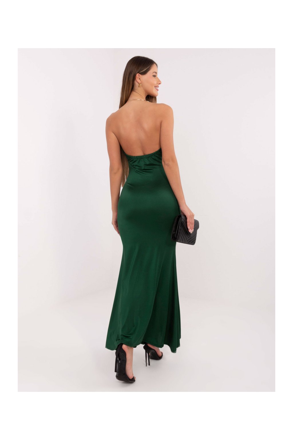 Dlouhé šaty s efektním výstřihem Italy Fashion tmavě zelené