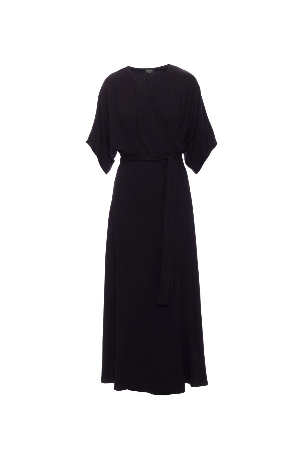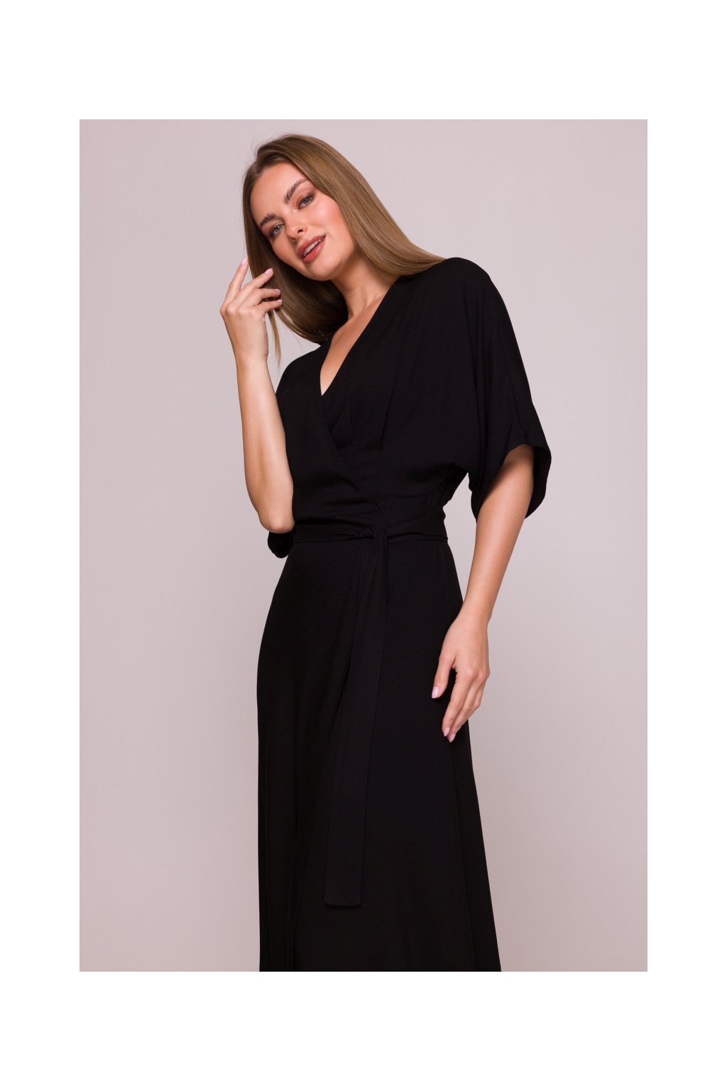 Zavinovací střih šatů skvěle podtrhuje přirozenou krásu postavy. Díky zavazování v pase si lze šaty snadno přizpůsobit dle vlastních potřeb. Výrazný hluboký výstřih do tvaru V opticky prodlužuje krk a jemně zvýrazňuje dekolt, aniž by působil příliš vyzývavě. Právě tento detail dotváří celkový elegantní vzhled a navozuje dojem lehkosti. Dlouhá, volně splývavá sukně poskytuje šatům romantický a pohybem rozvlněný efekt. Díky dostatečné délce působí šaty slavnostně i ve všedních situacích, přičemž zachovávají maximální pohodlí při chůzi nebo tanci. Široké rukávy sahající do úrovně loktů poskytují vzdušnost a volnost pohybu. Jsou ideální pro teplejší dny, kdy je důležité zachovat komfort.Díky volbě viskózy jako hlavního materiálu jsou šaty nejen příjemné na dotek, ale i prodyšné, což z nich činí skvělou volbu pro každodenní nošení i speciální příležitosti. Šaty jsou nenáročné na údržbu.
