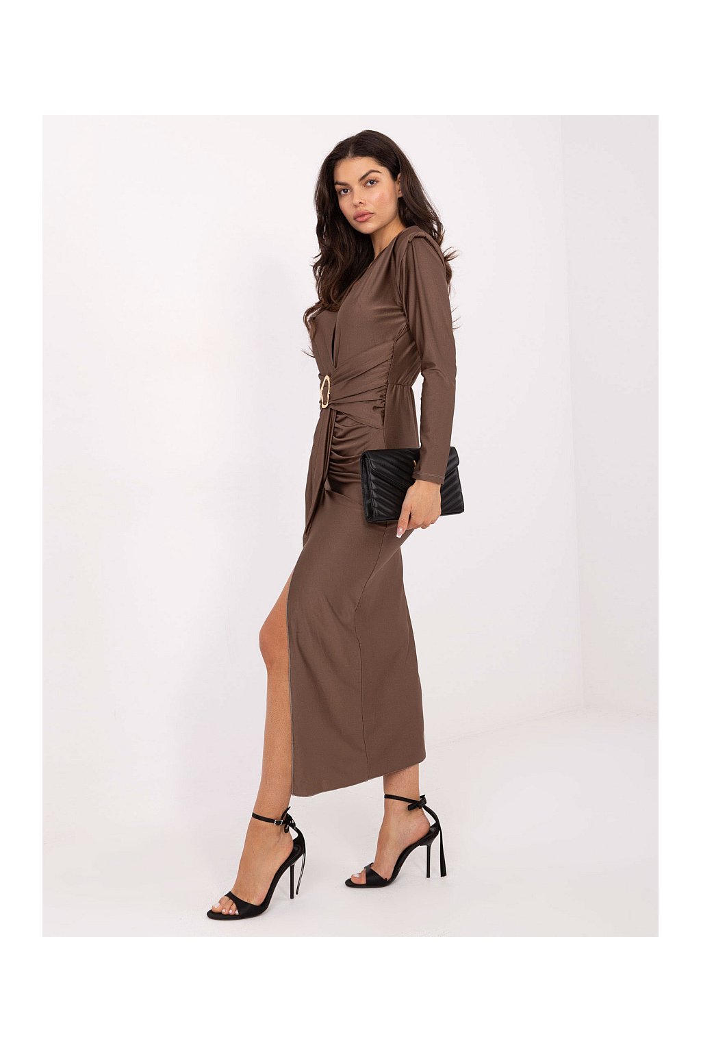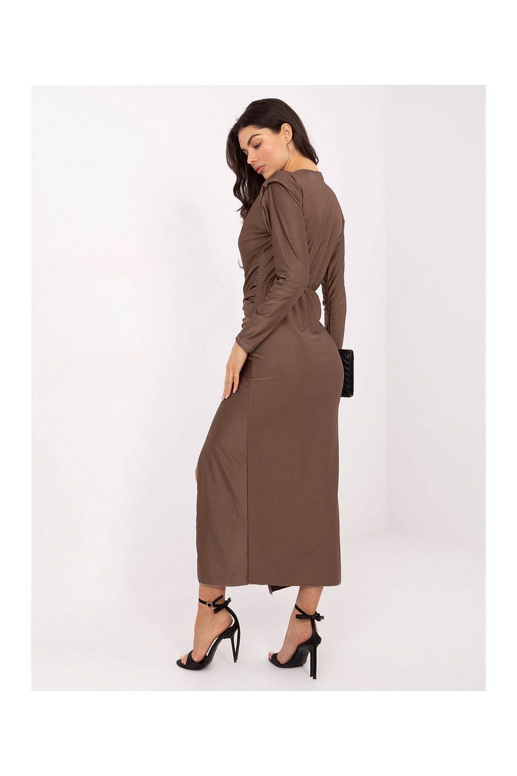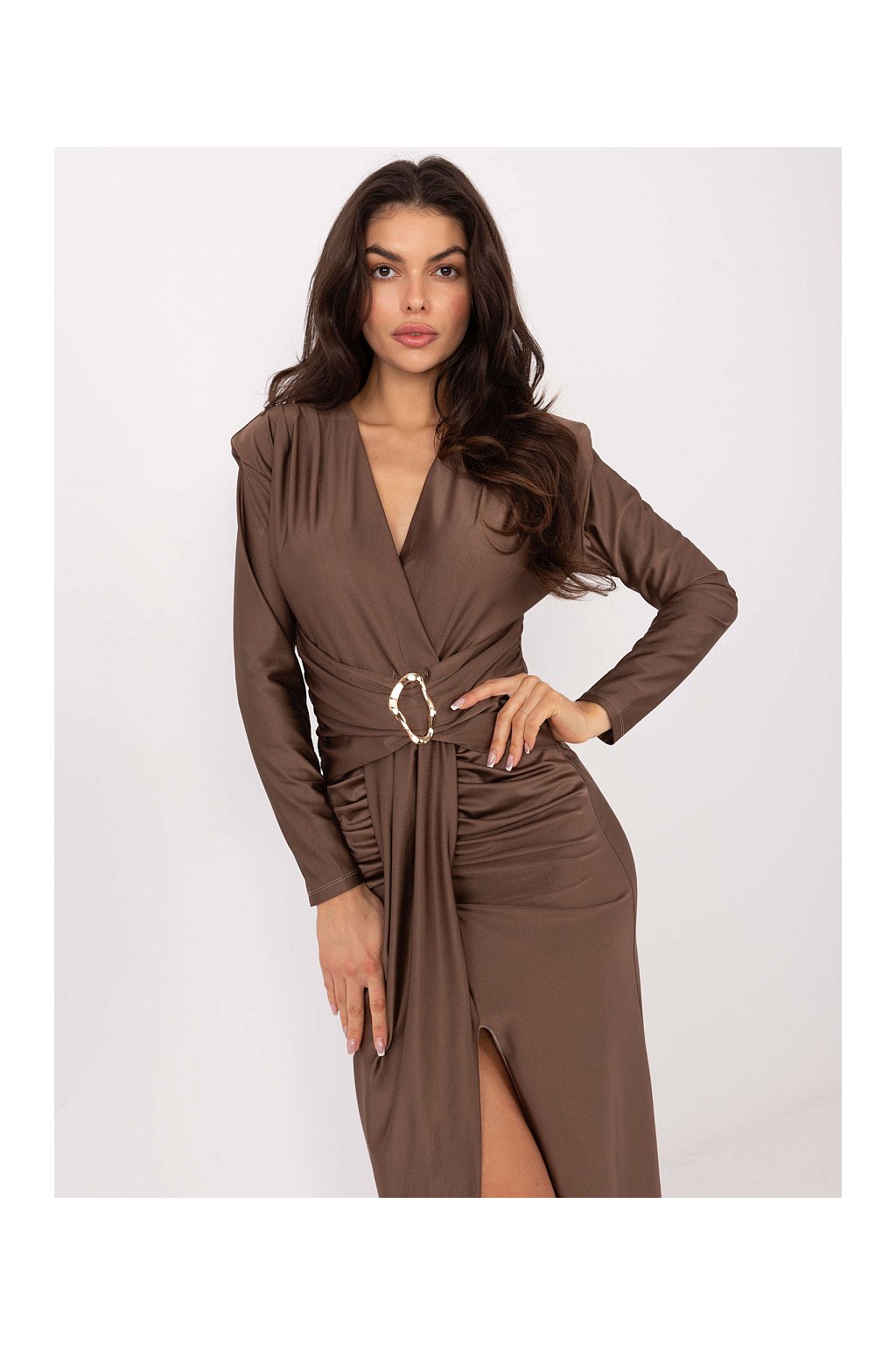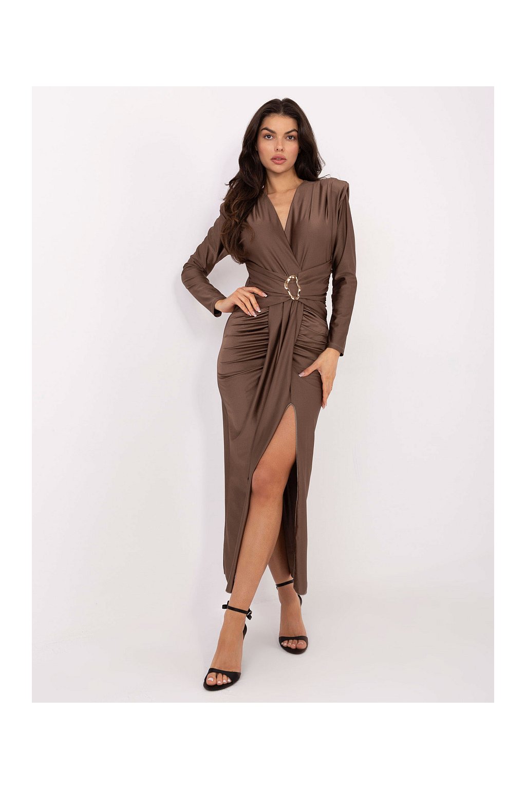 Elegantní šaty s řasením Italy Fashion tmavě béžové