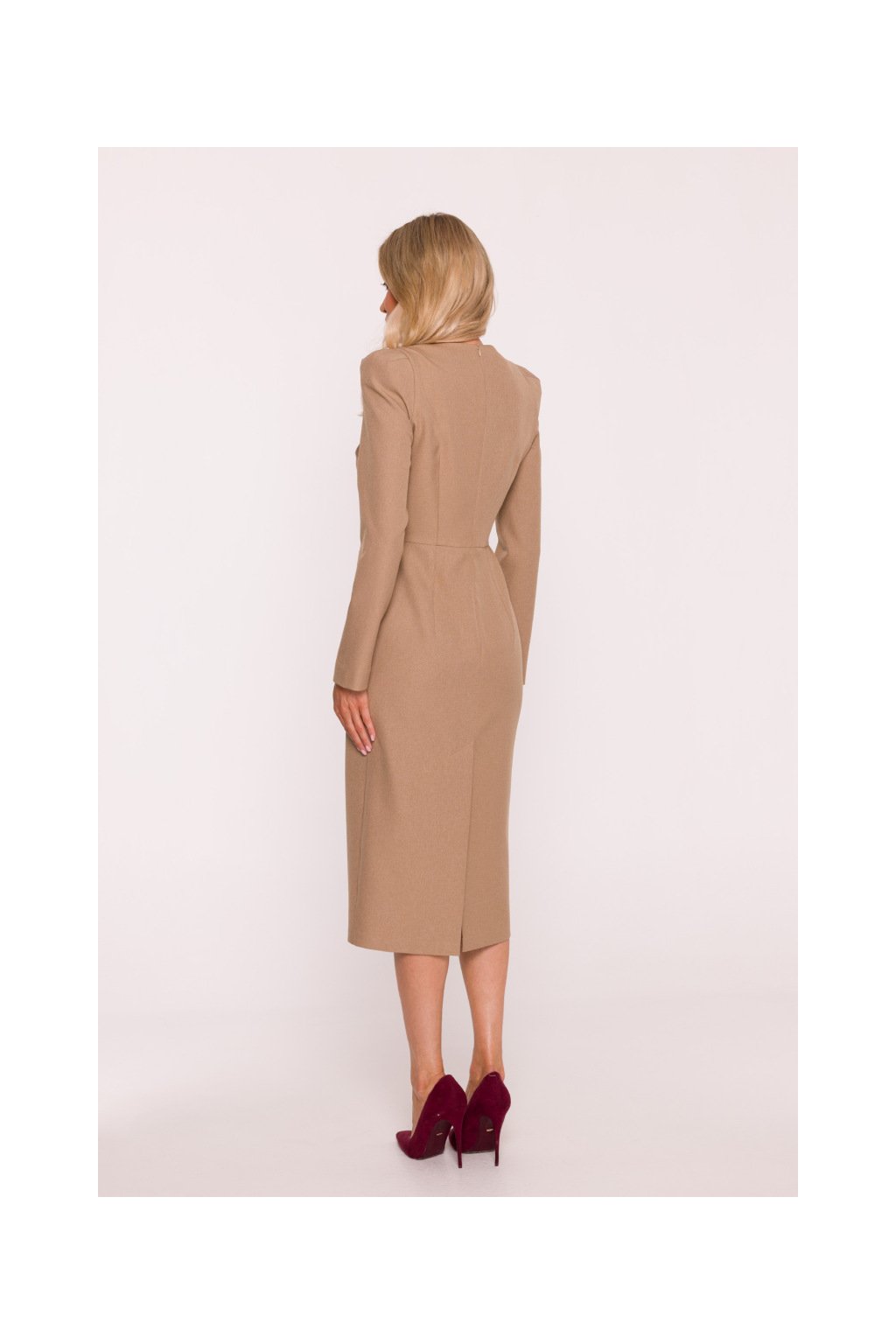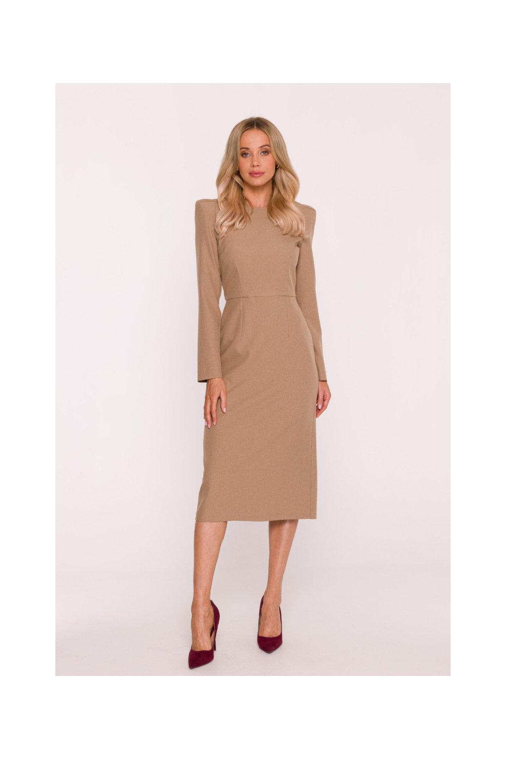 Elegantní šaty s výraznými rameny Stylove S412 béžové