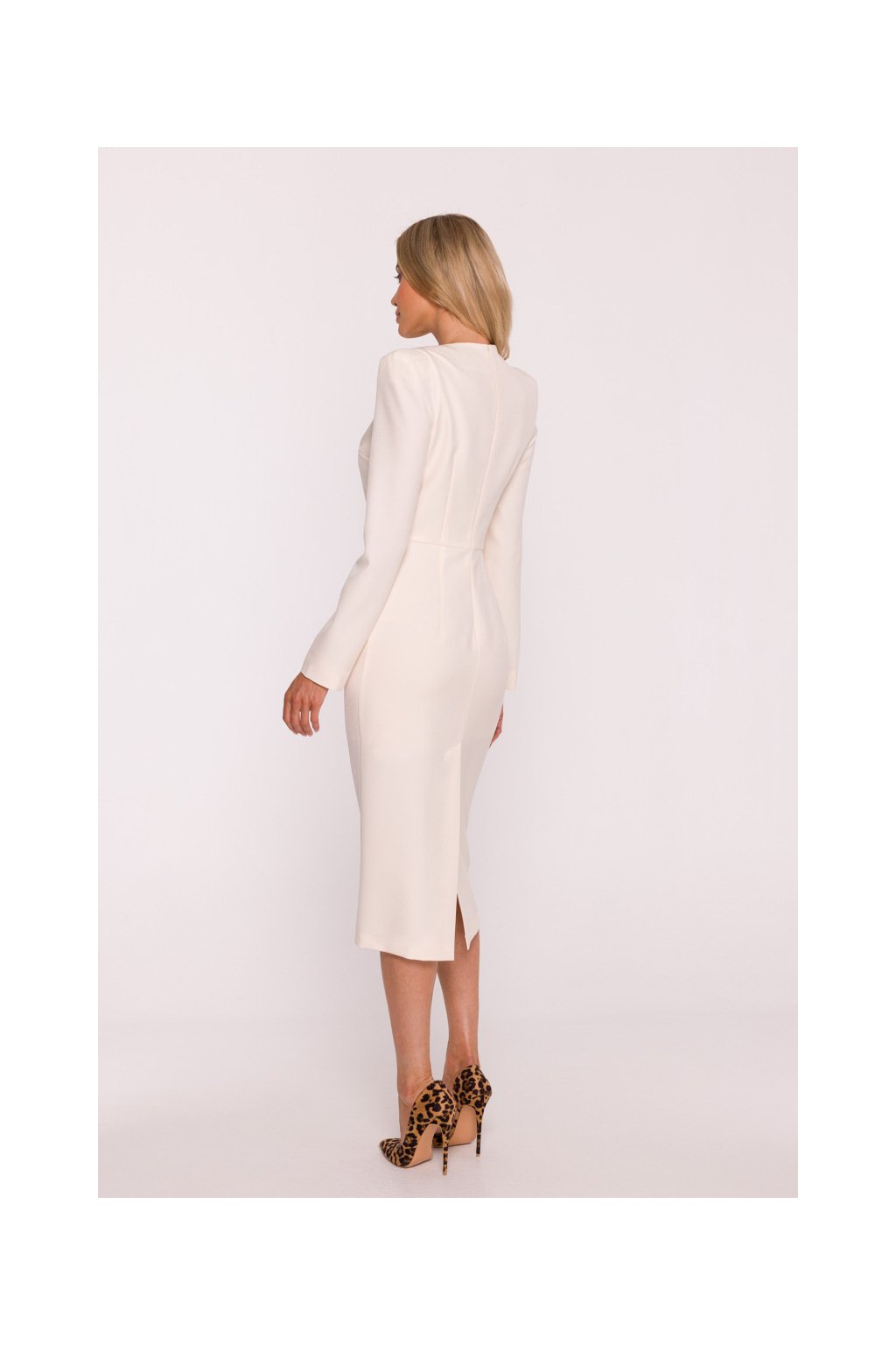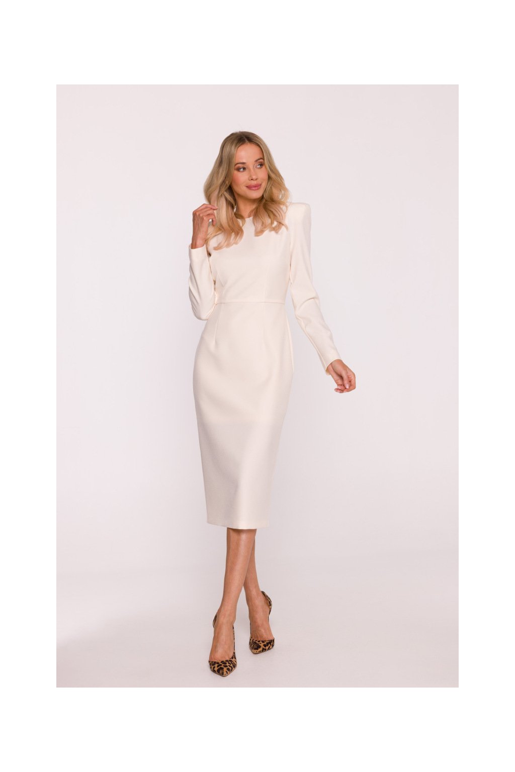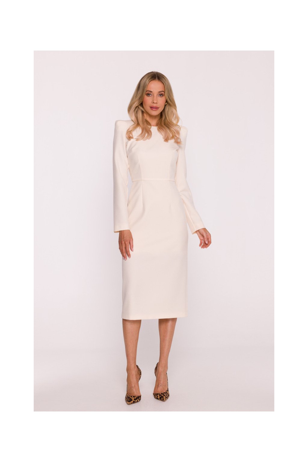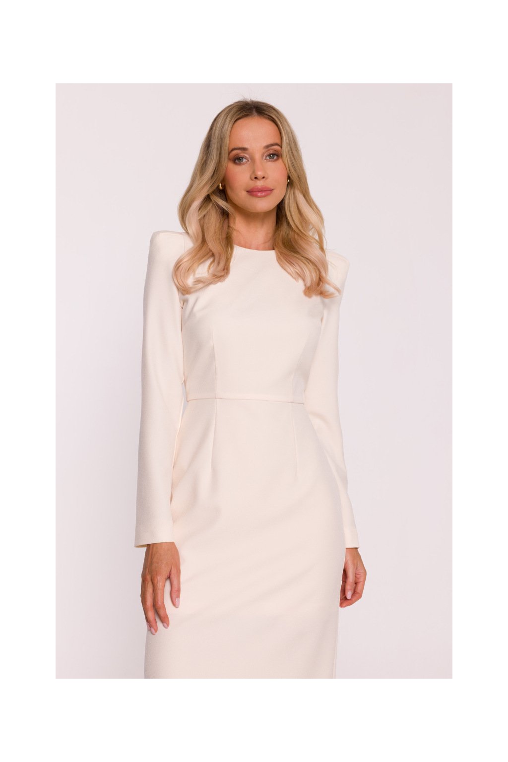 Elegantní šaty s výraznými rameny Stylove S412 smetanové