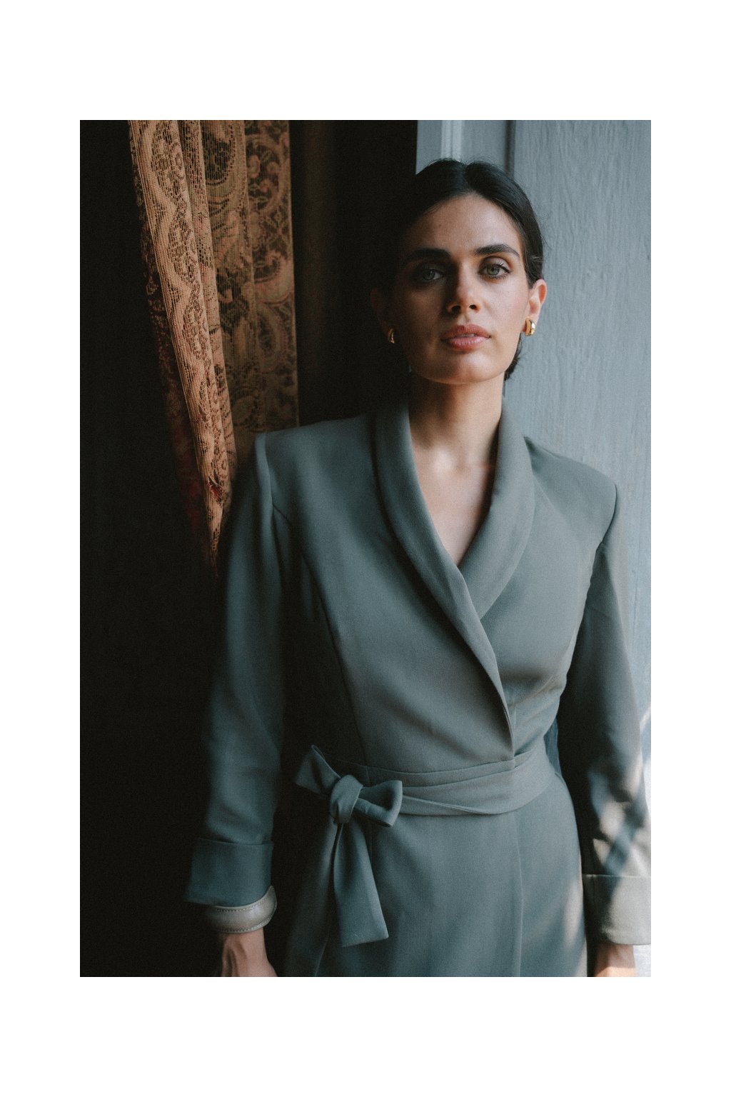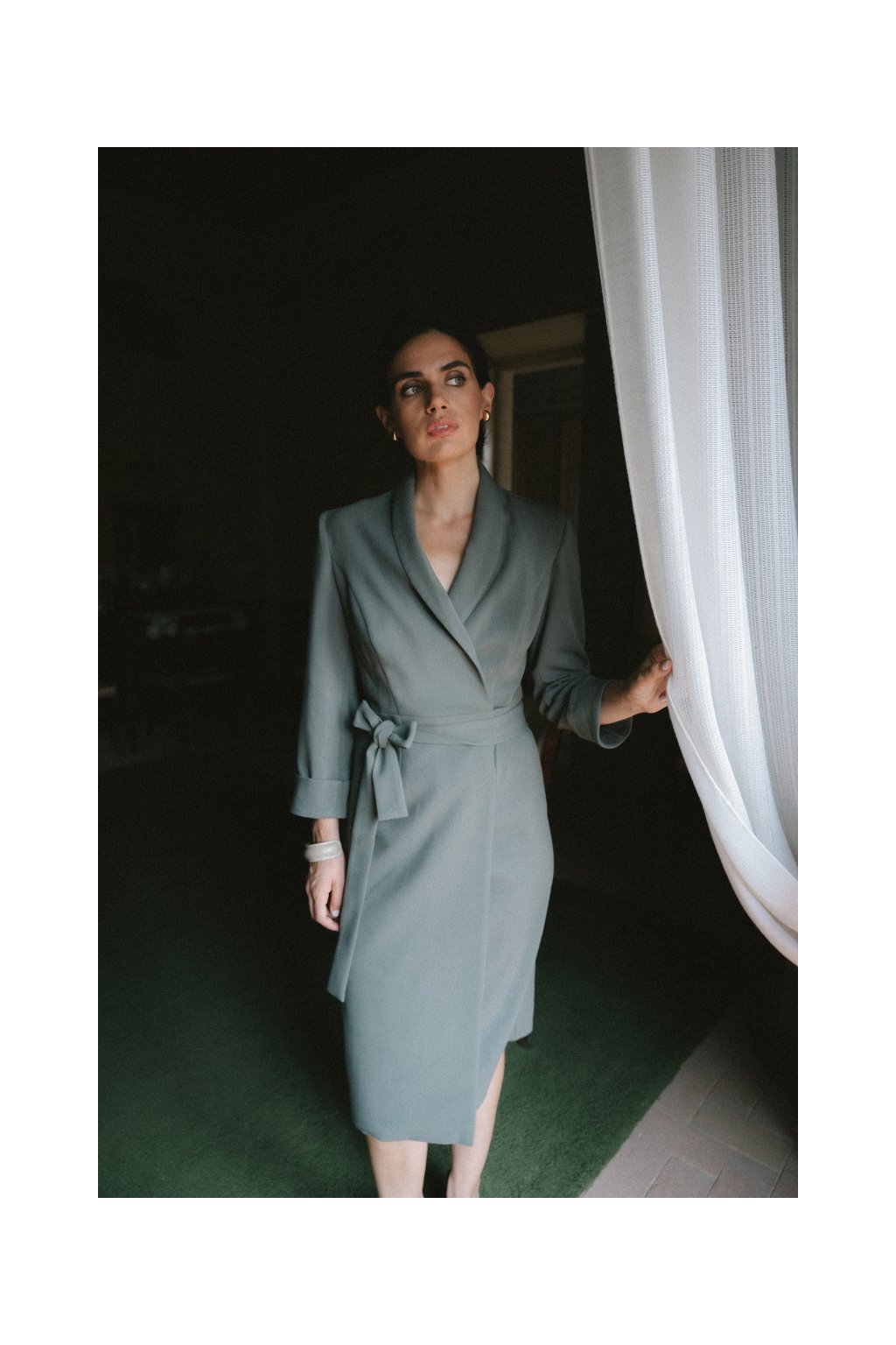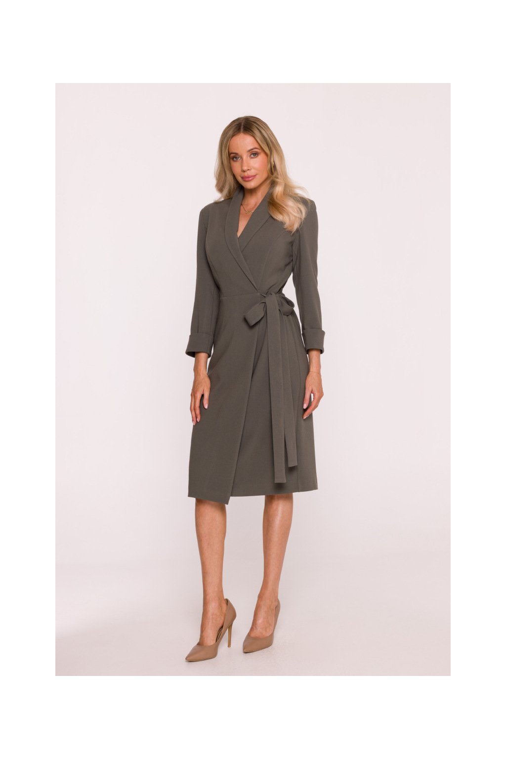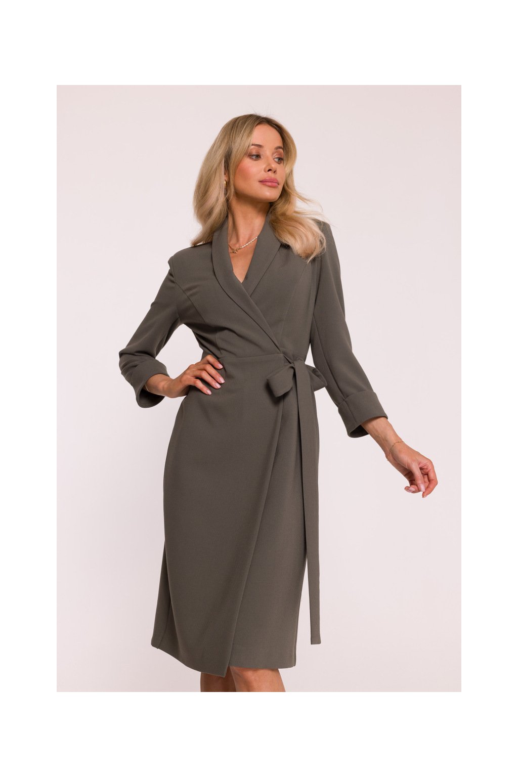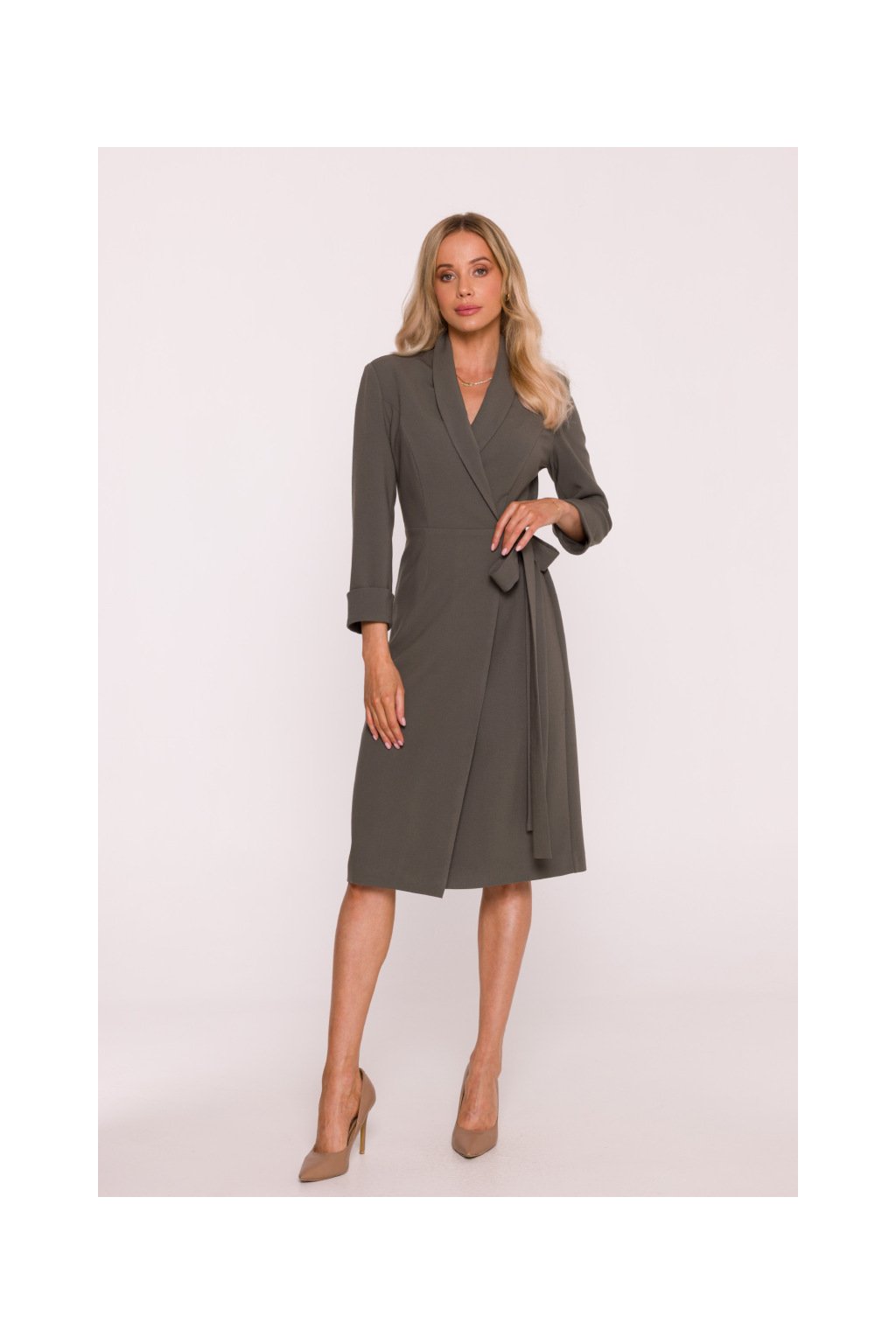 Elegantní zavinovací šaty Stylove S415 khaki