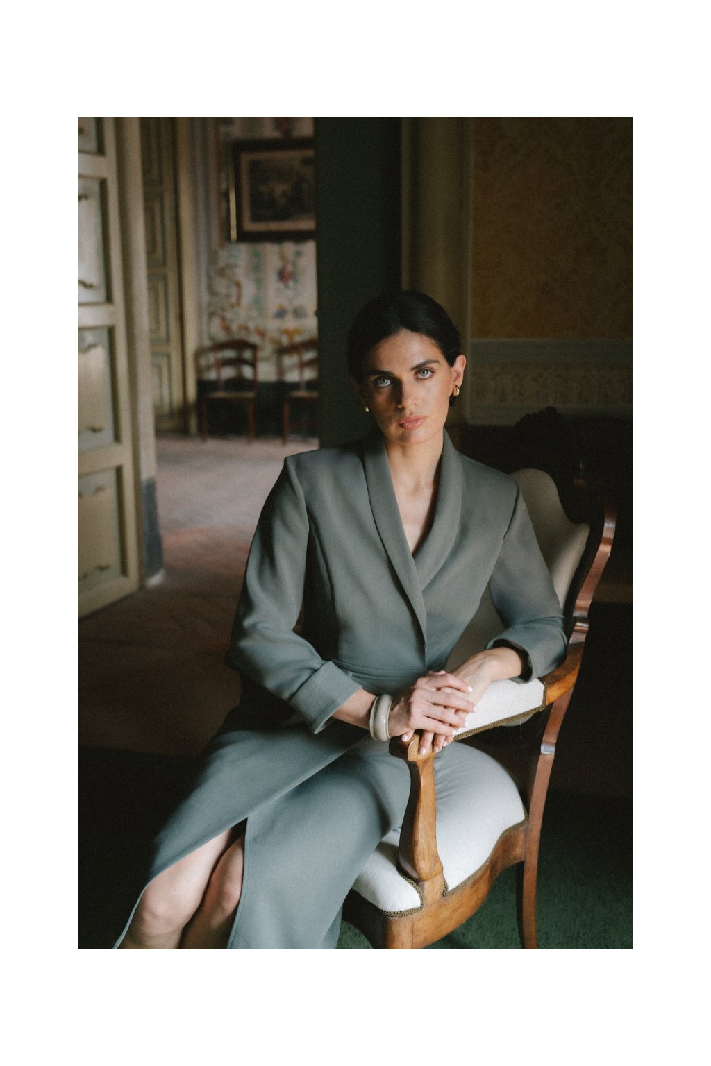 - Šálový límec – elegantní detail, který podtrhuje luxusní dojem z celého modelu.