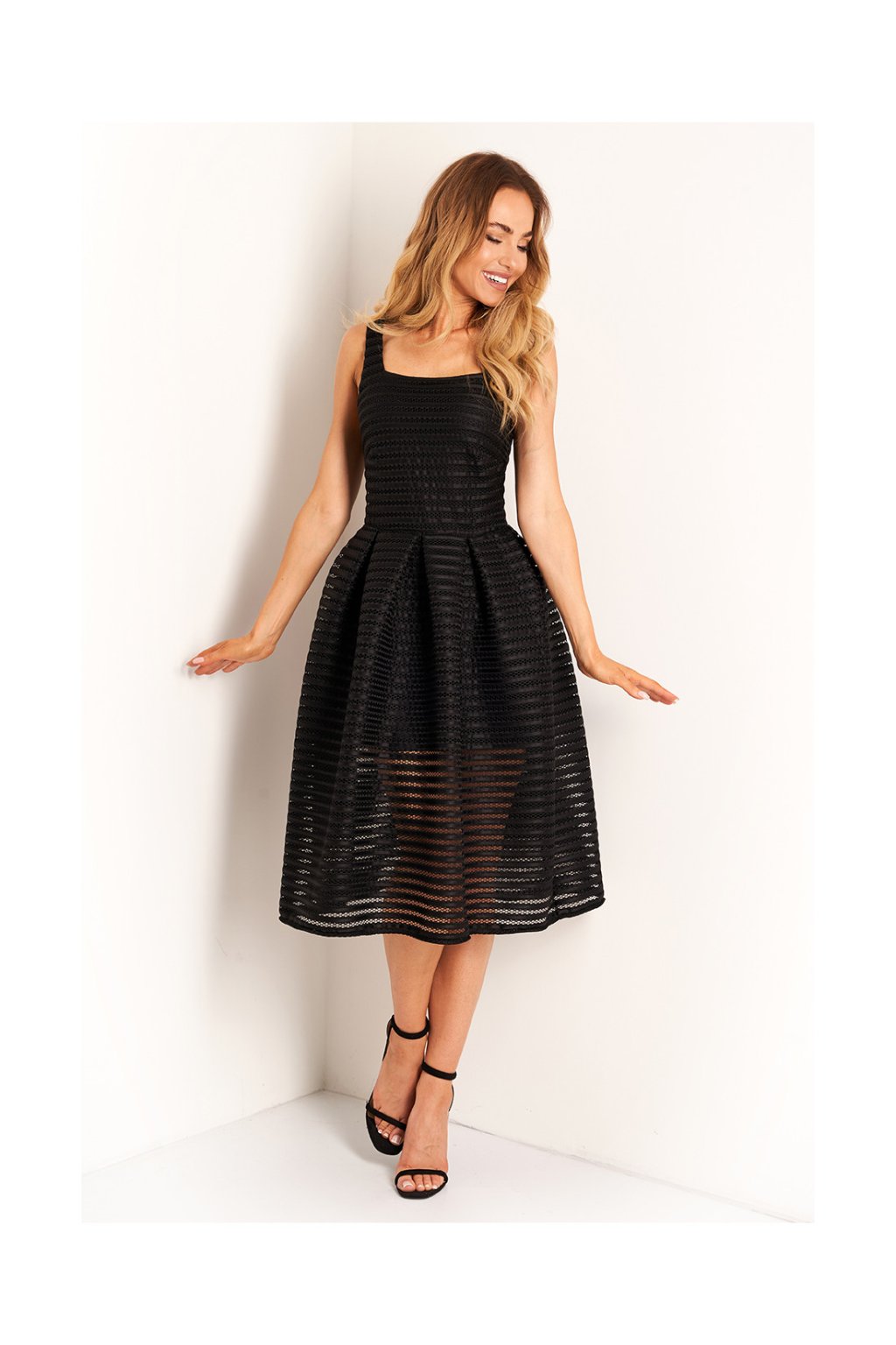 Koktejlové nabírané síťované šaty Lemoniade L398 černé