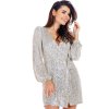 Efektní minišaty s dlouhými rukávy do gumičky a hlubokým výstřihem do V, v pase pásek, materiál při pohybu vytváří krásnou hru světel. S podšívkou.