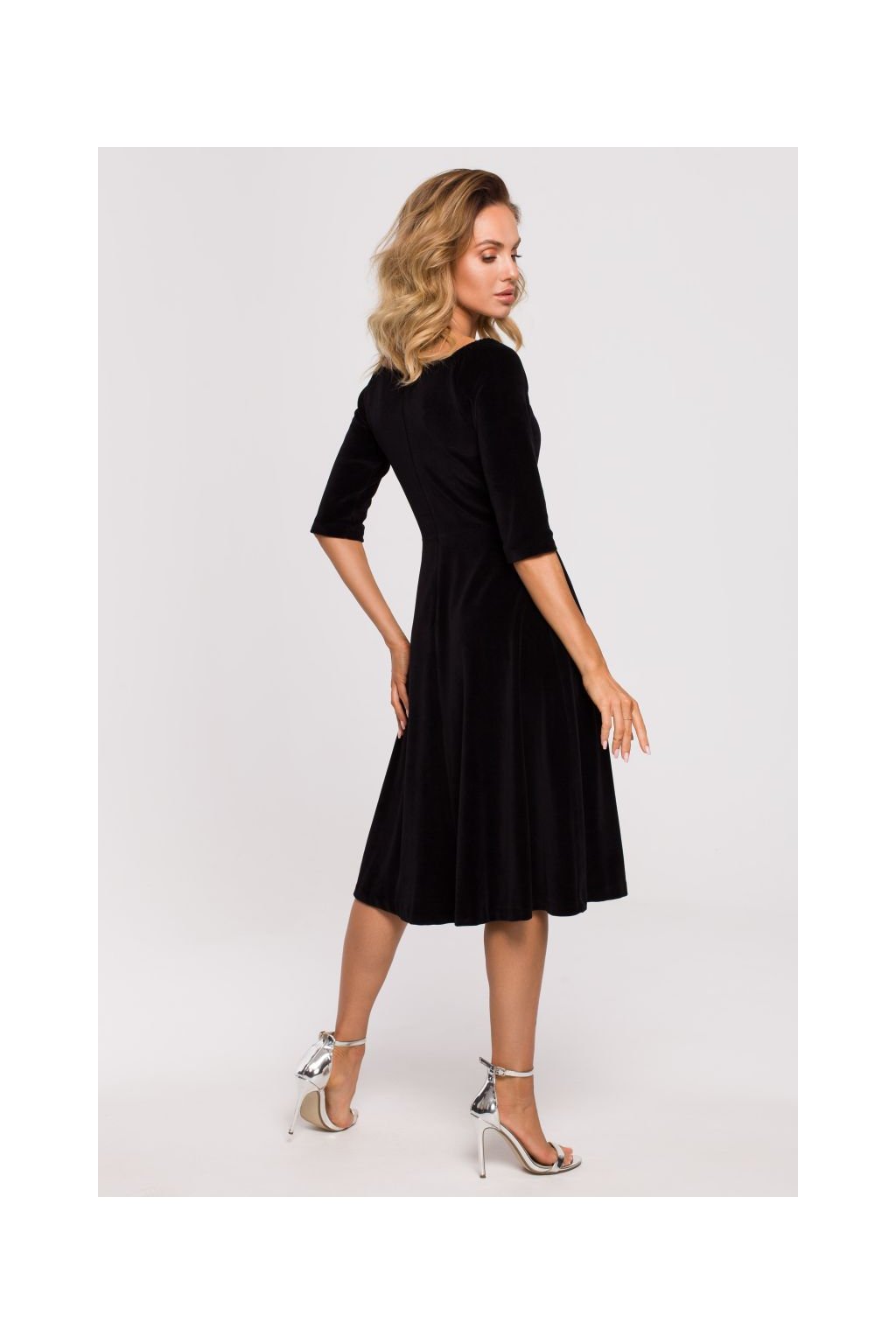 Společenské sametové zavinovací šaty MOE M645 černé