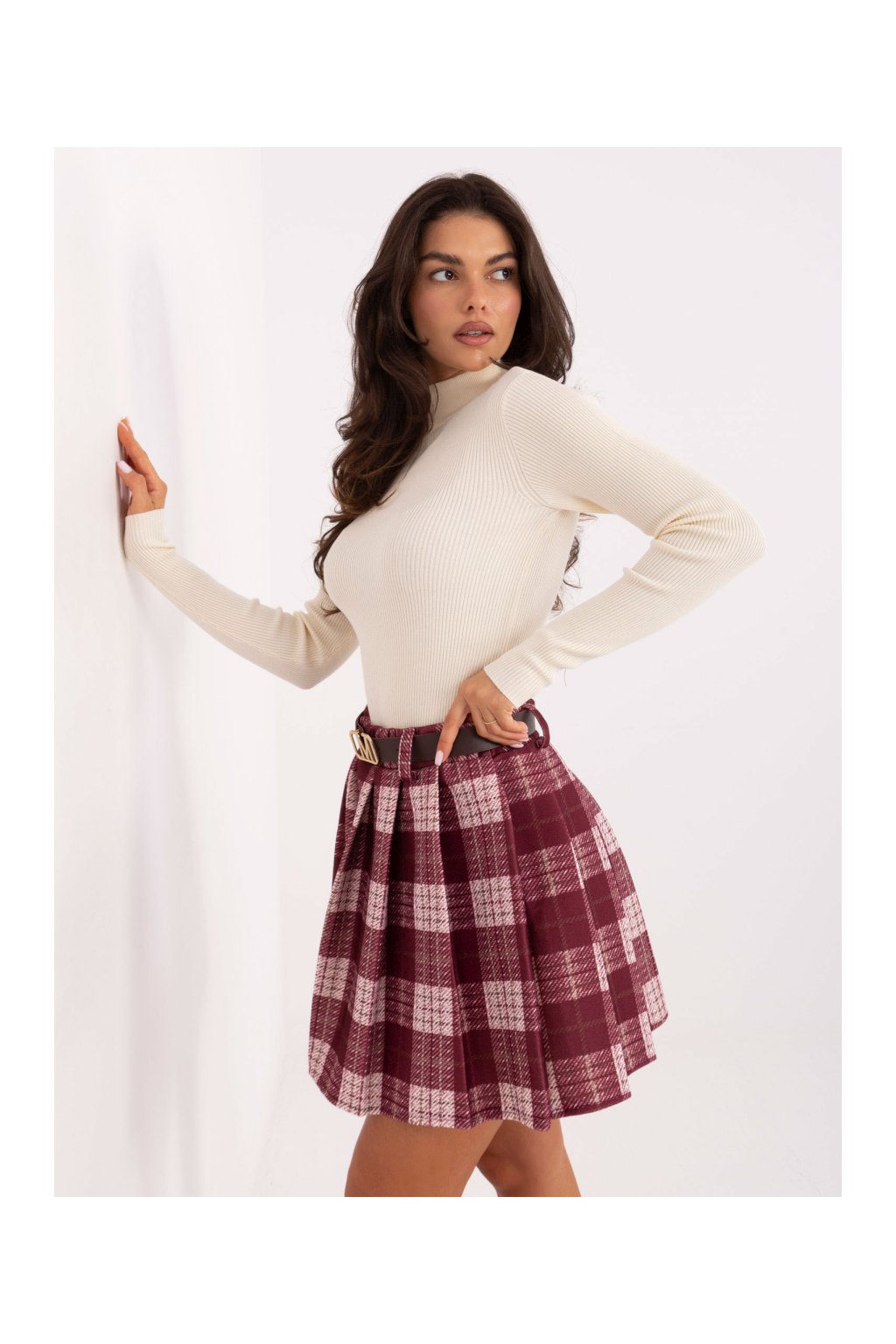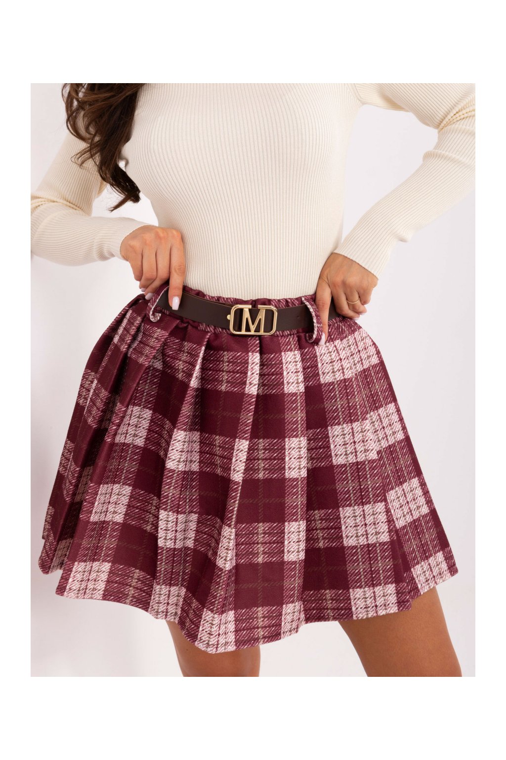 Skládaná kostkovaná minisukně Rue Paris bordó