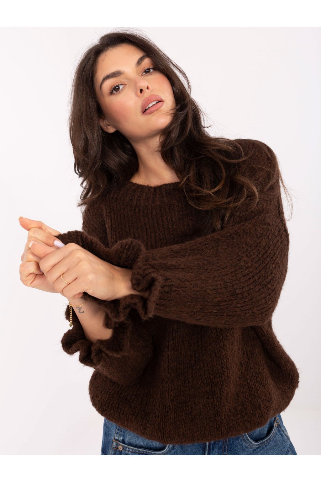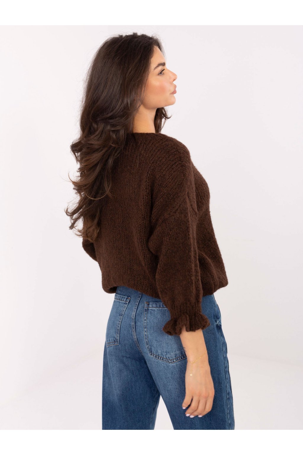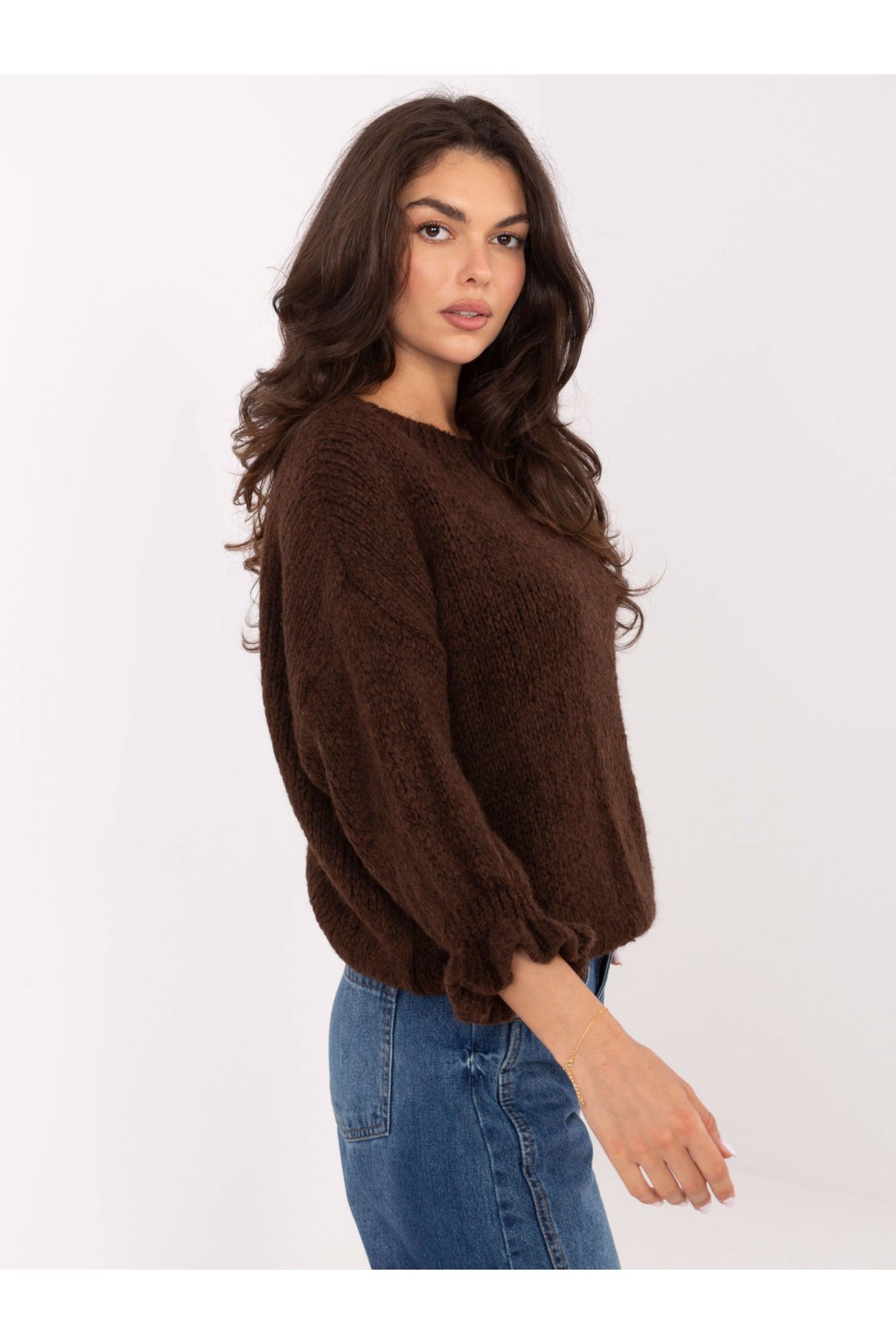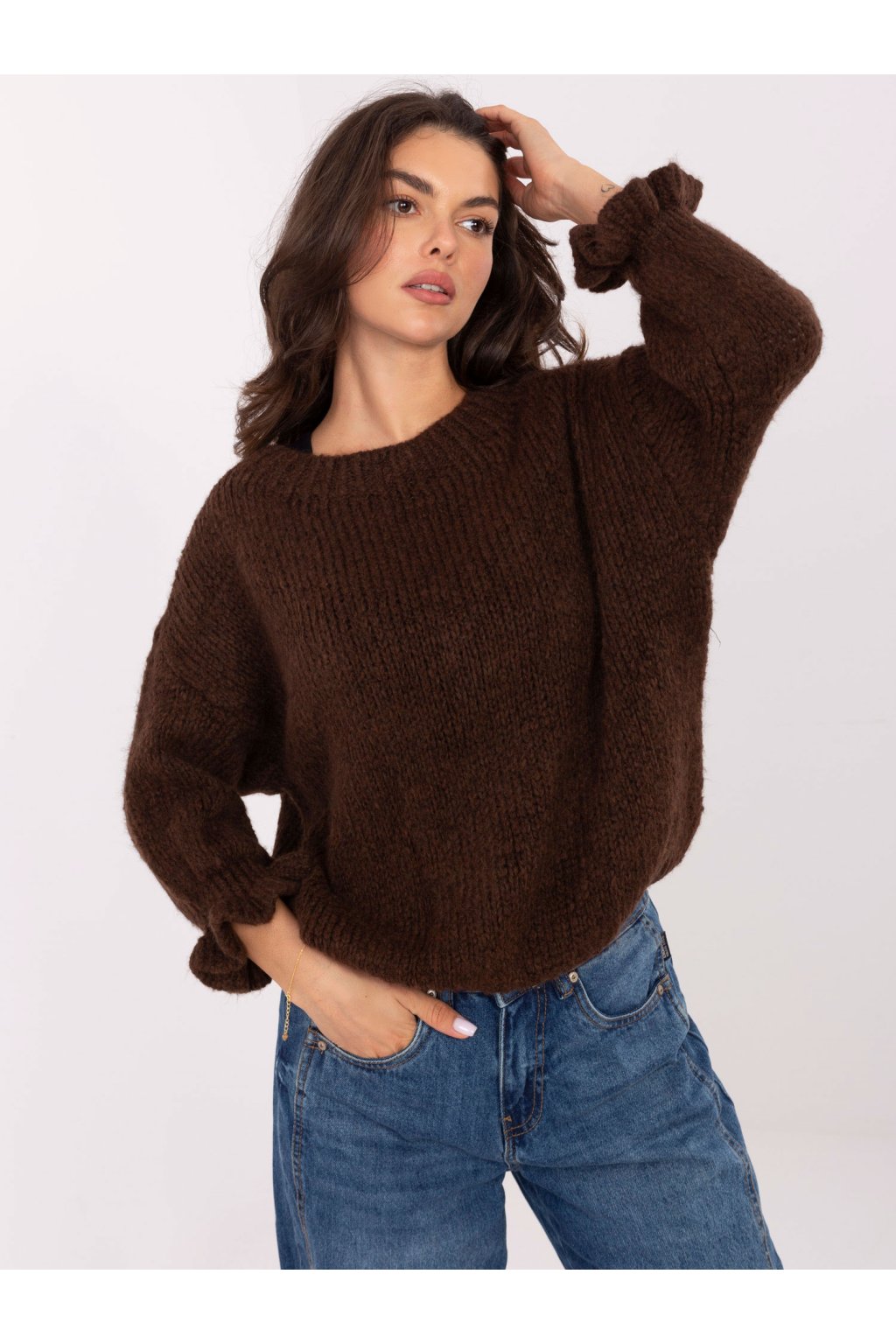 Jarní svetr z hrubého úpletu Italy Fashion hnědý